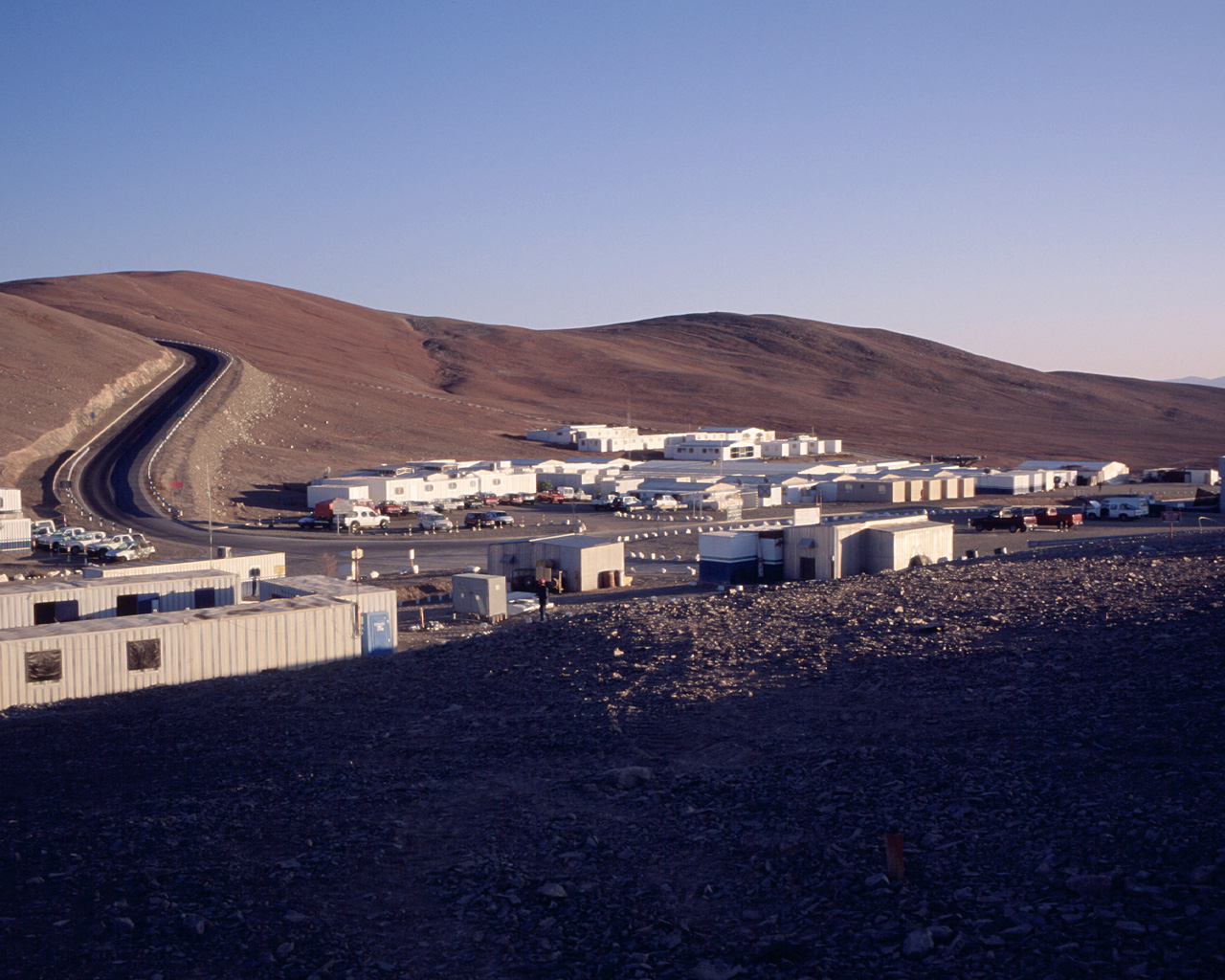 The Basecamp is located below the Paranal mountain. It is centre of the daily life at Paranal, with the various service buildings, laboratories and offices, as well as dormitories for staff and visitors.