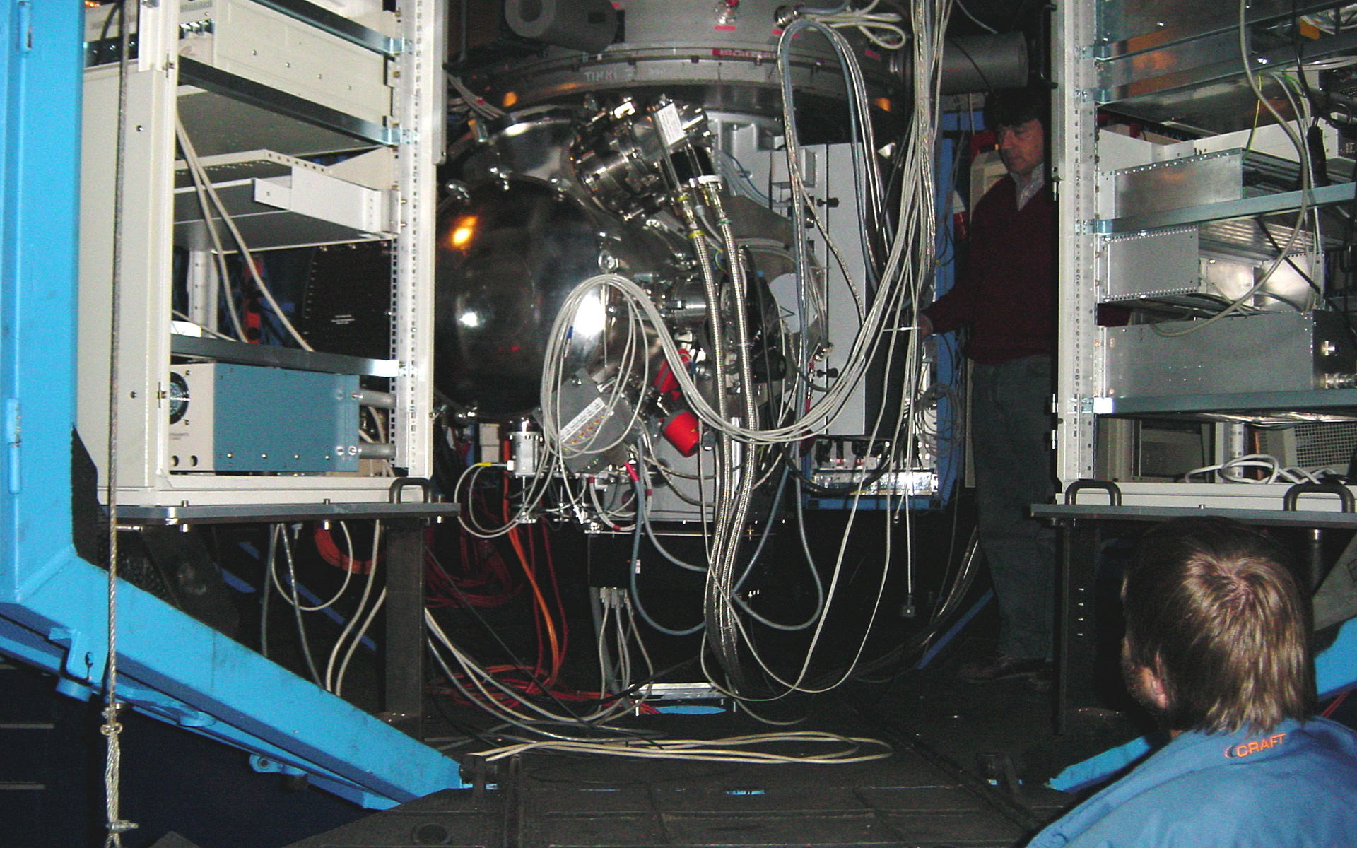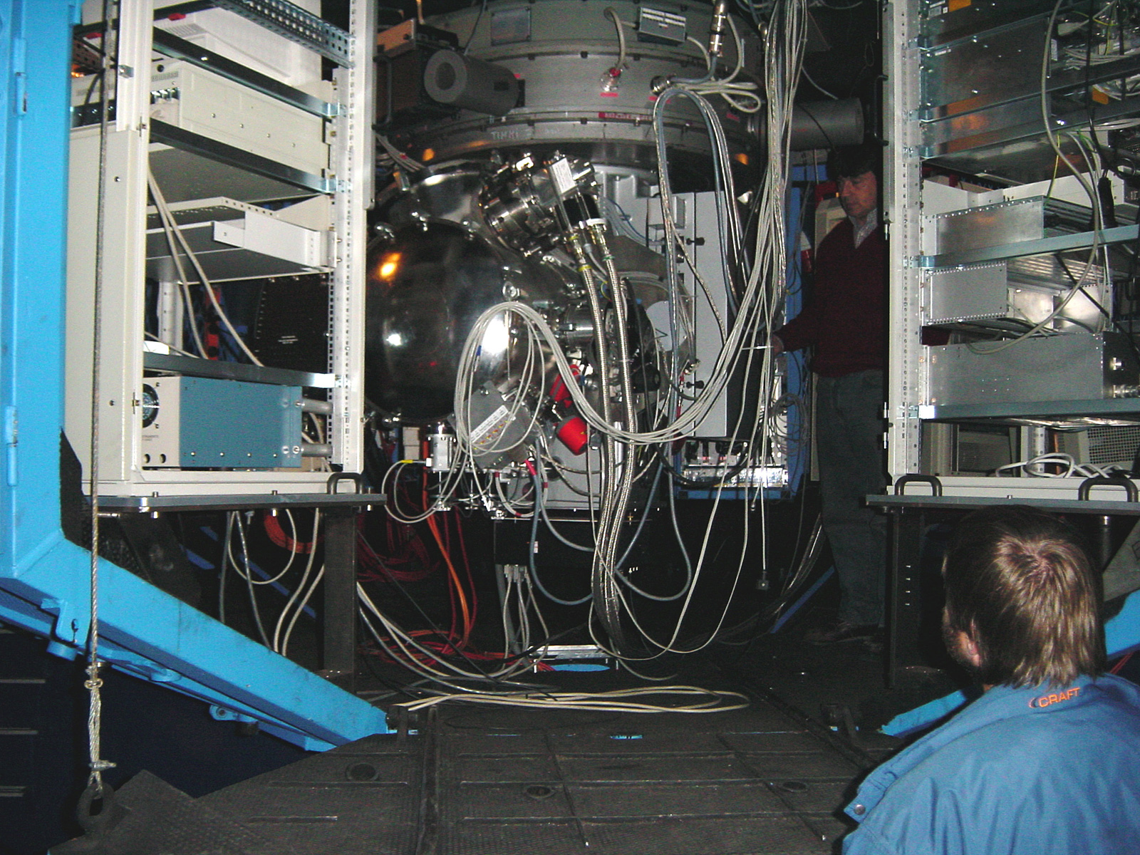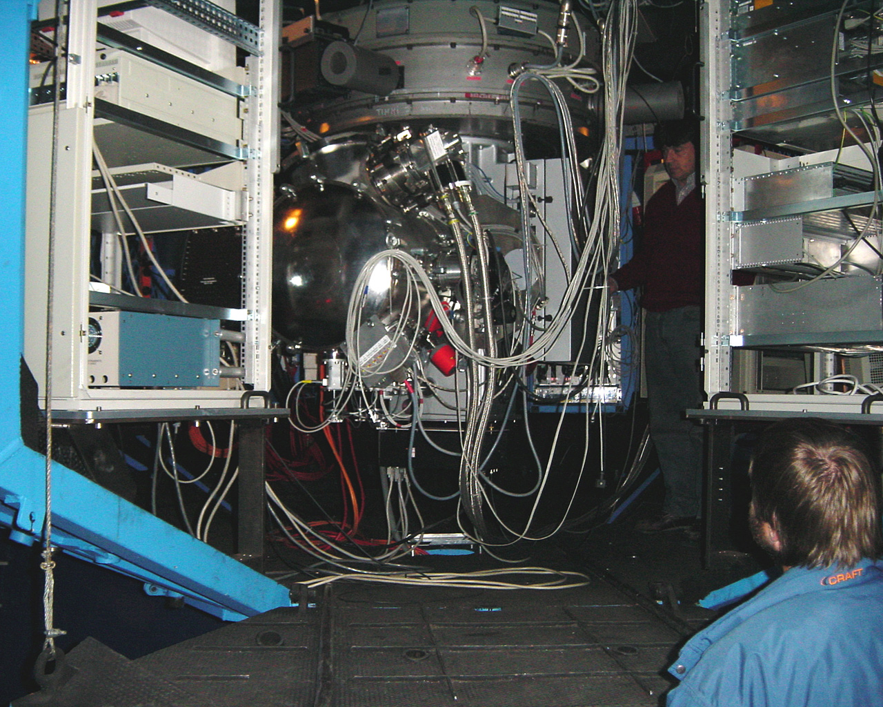 The TIMMI2 instrument at the Cassegrain focus of the ESO 3.6-m telescope at La Silla. It is here seen just before "first light" in January 2001.
