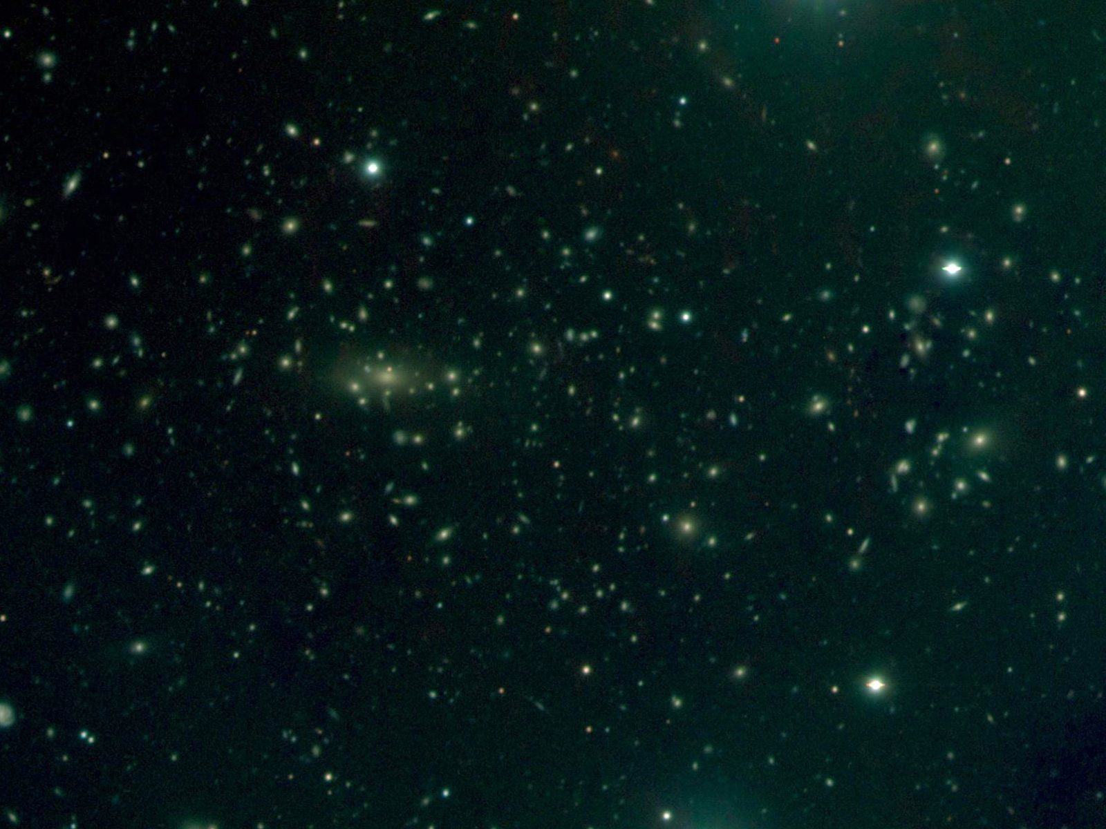 The distant cluster of galaxies MS 1008.1-1224 is some 3 billion light-years distant (redshift z = 0.301). The galaxies in this cluster — that we observe as they were 3 billion years ago — are different from galaxies in our neighbourhood ; their stellar populations, on the average, are younger.