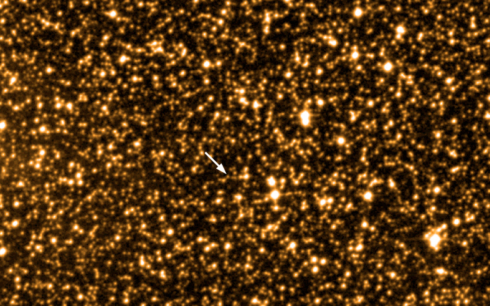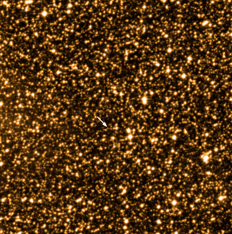 Sky field in the southern constellation Carina (The Ship Keel) with the images of the star OGLE-TR-132, around which a transiting extra-solar planet (exoplanet) has been identified. The field measures 10 x 10 square arcmin; North is up and East is left. This image has been reproduced from the Digitized Sky Survey (DSS).