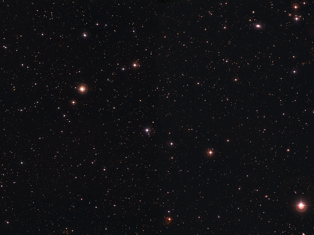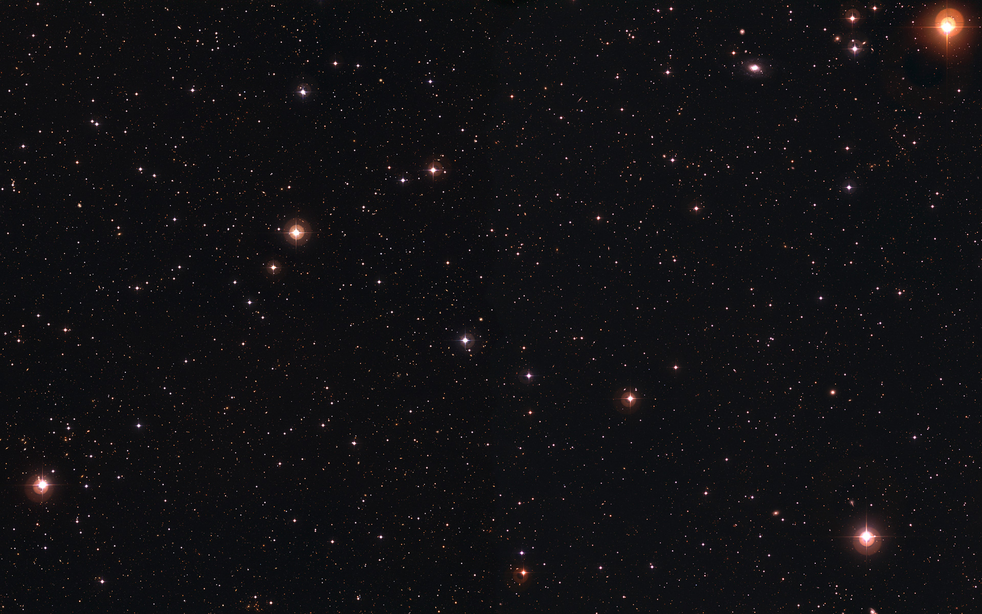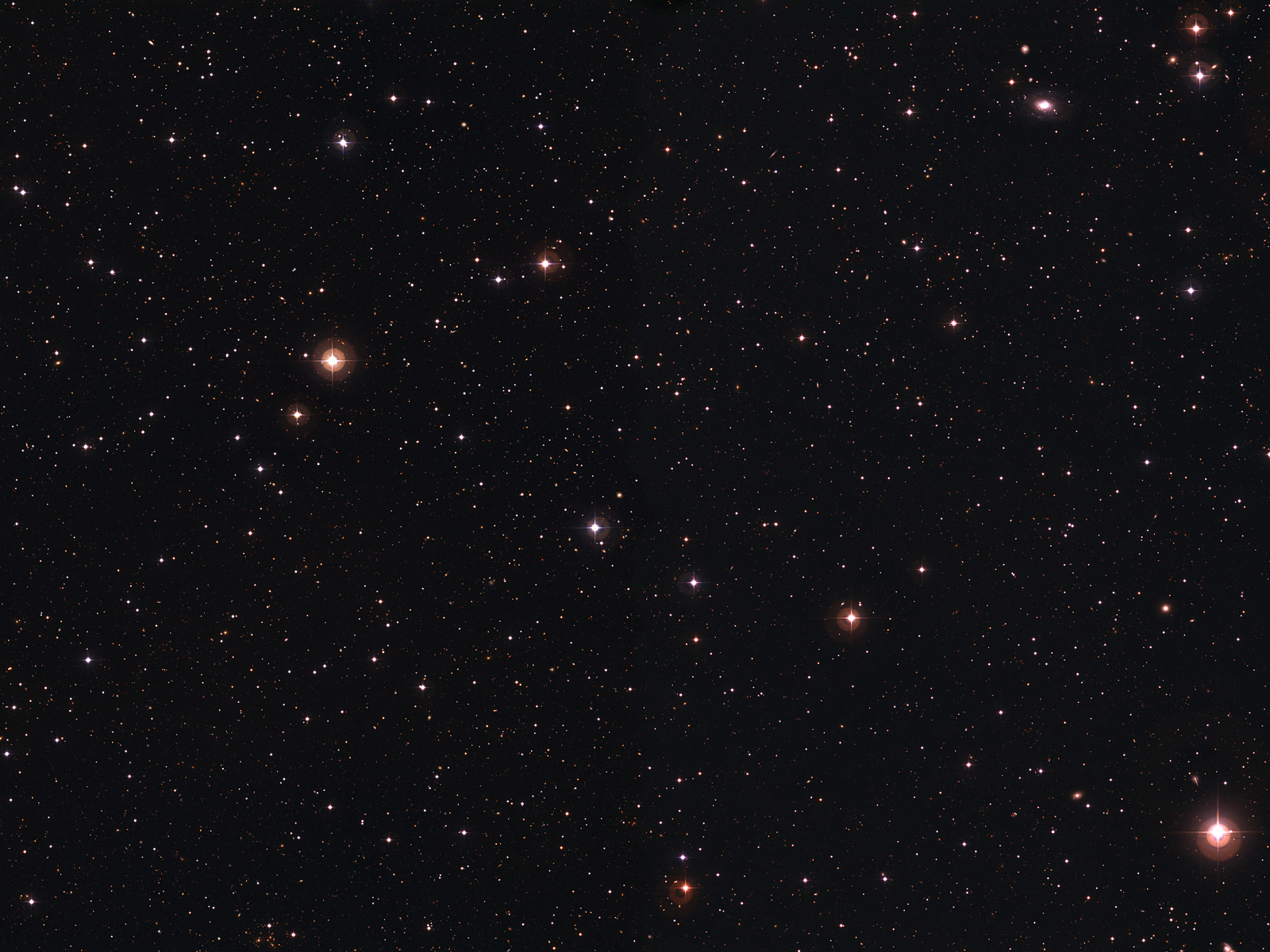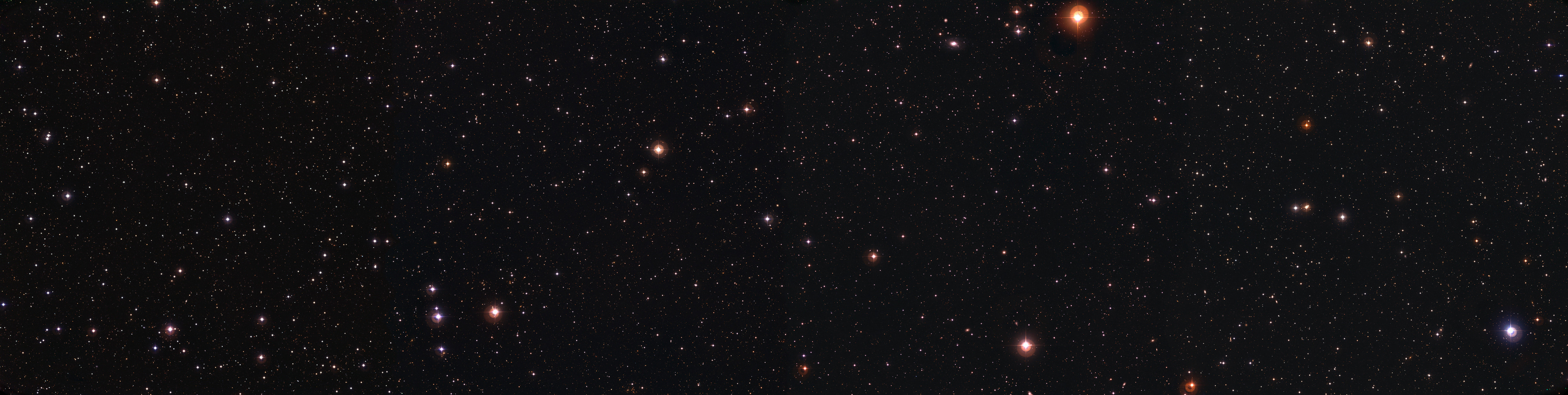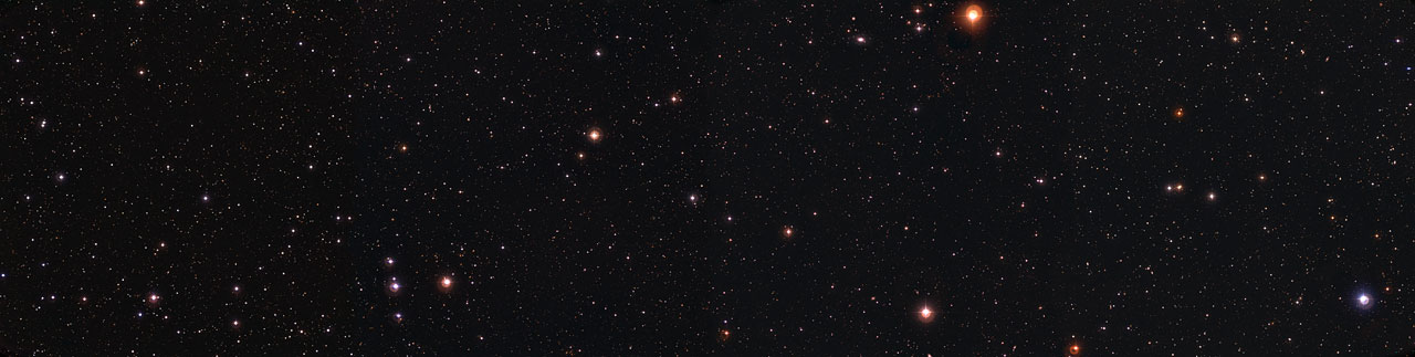 Colour image of the Deep 3 'empty' field observed with the Wide-Field Camera on the MPG/ESO 2.2-m telescope at La Silla. The image is the combination of 714 frames for a total exposure time of 64.5 hours obtained through four different filters (B, V, R, and I). It consists of four adjacent Wide-Field Camera pointings (each 33x34 arcmin), covering a total area larger than one square degree. The original image — whose resolution is conserved in the fullsize original version and in eso0614c — consists of about 300 million pixels. It had to be downscaled to be of reasonable size for the Internet. North is up and East is to the left.