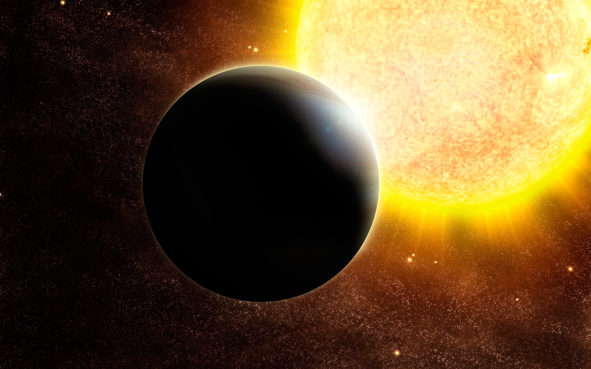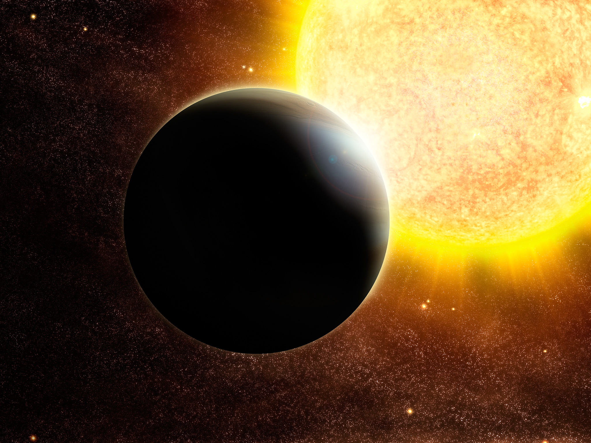 Artist's impression of a transiting Jupiter-mass exoplanet around a star slightly more massive than the Sun, such as the one discovered around SWEEPS-04.