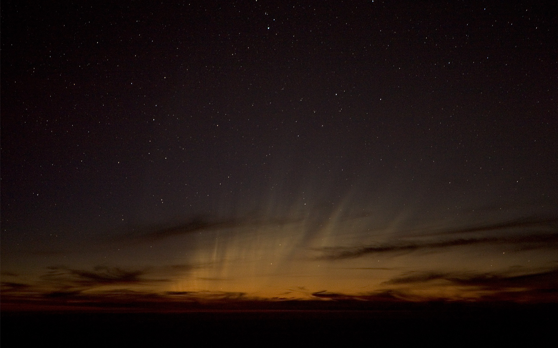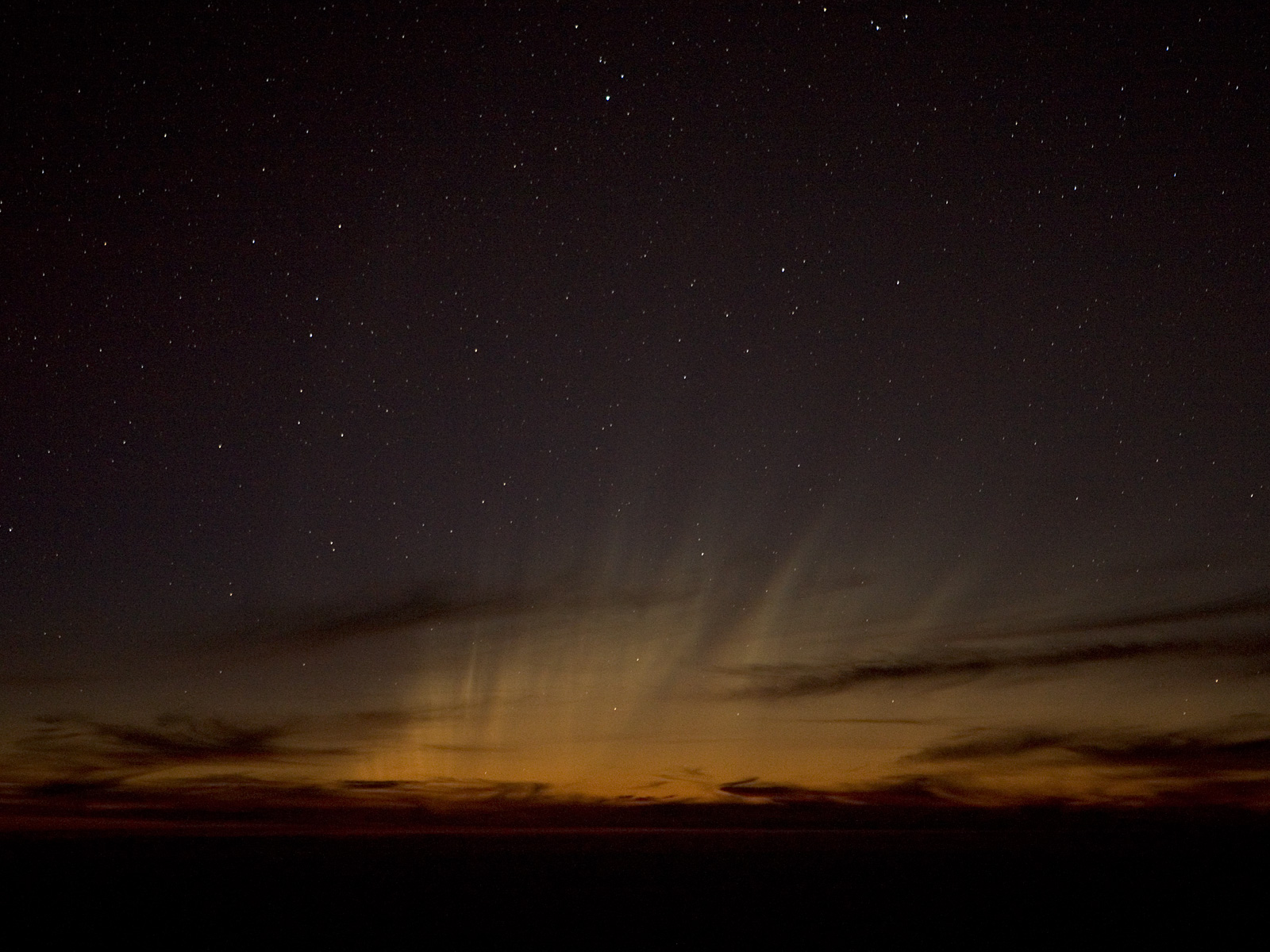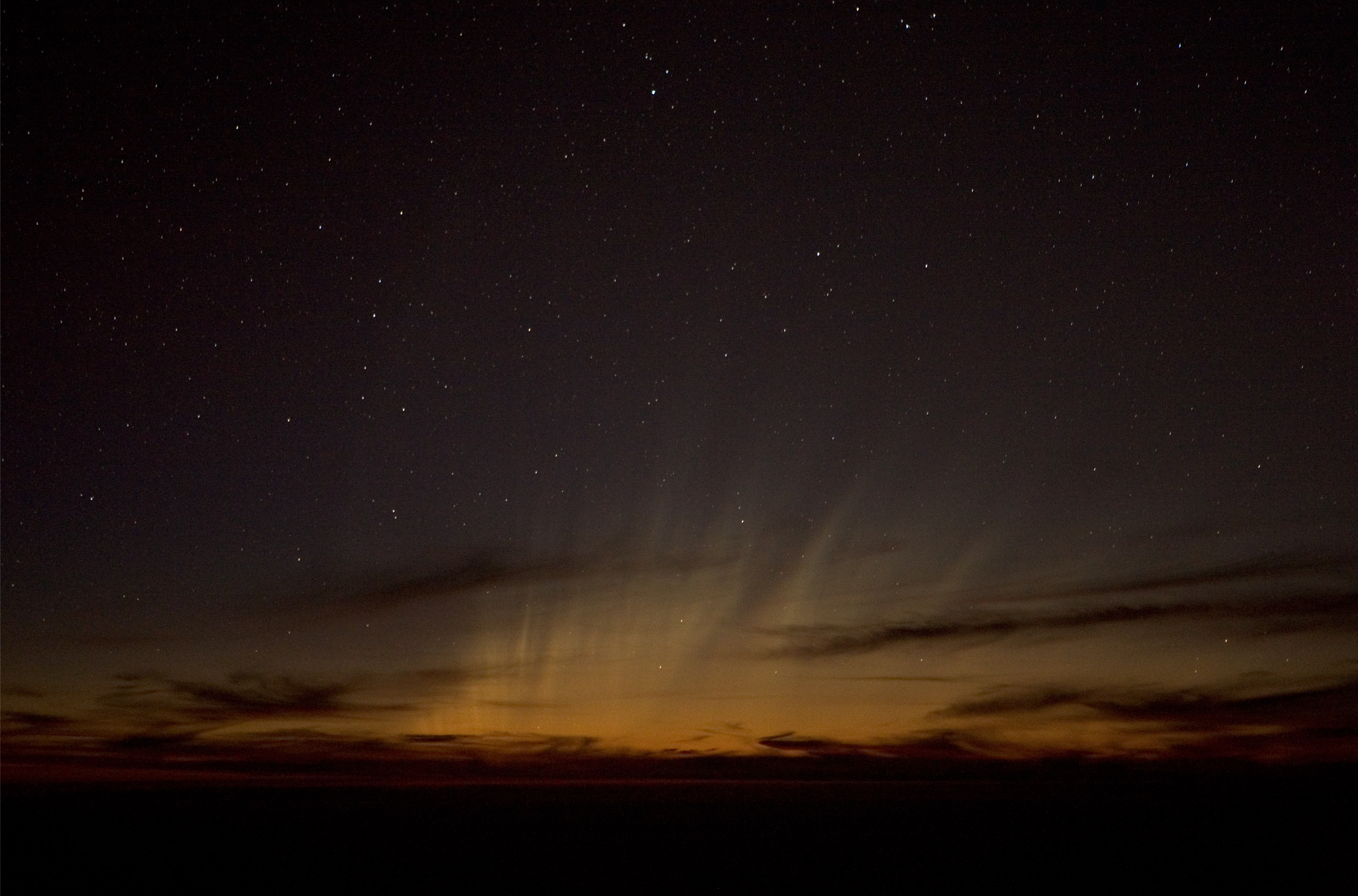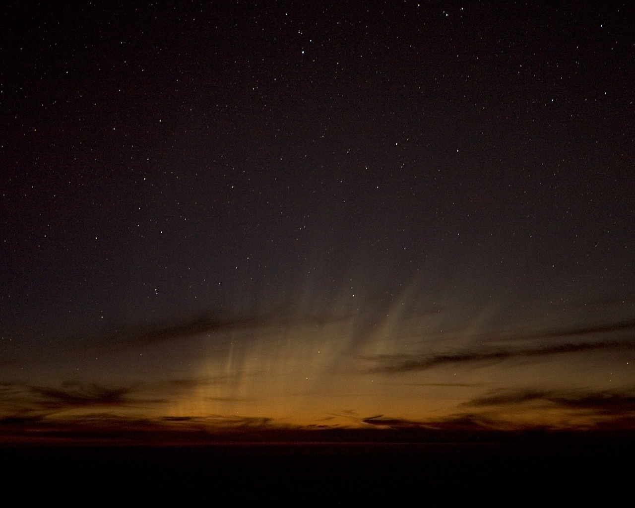 The 'old tails' from Comet McNaught observed in the evening of 17 January 2007 from Paranal, when the comet had just set. The outcome resembles an aurora.