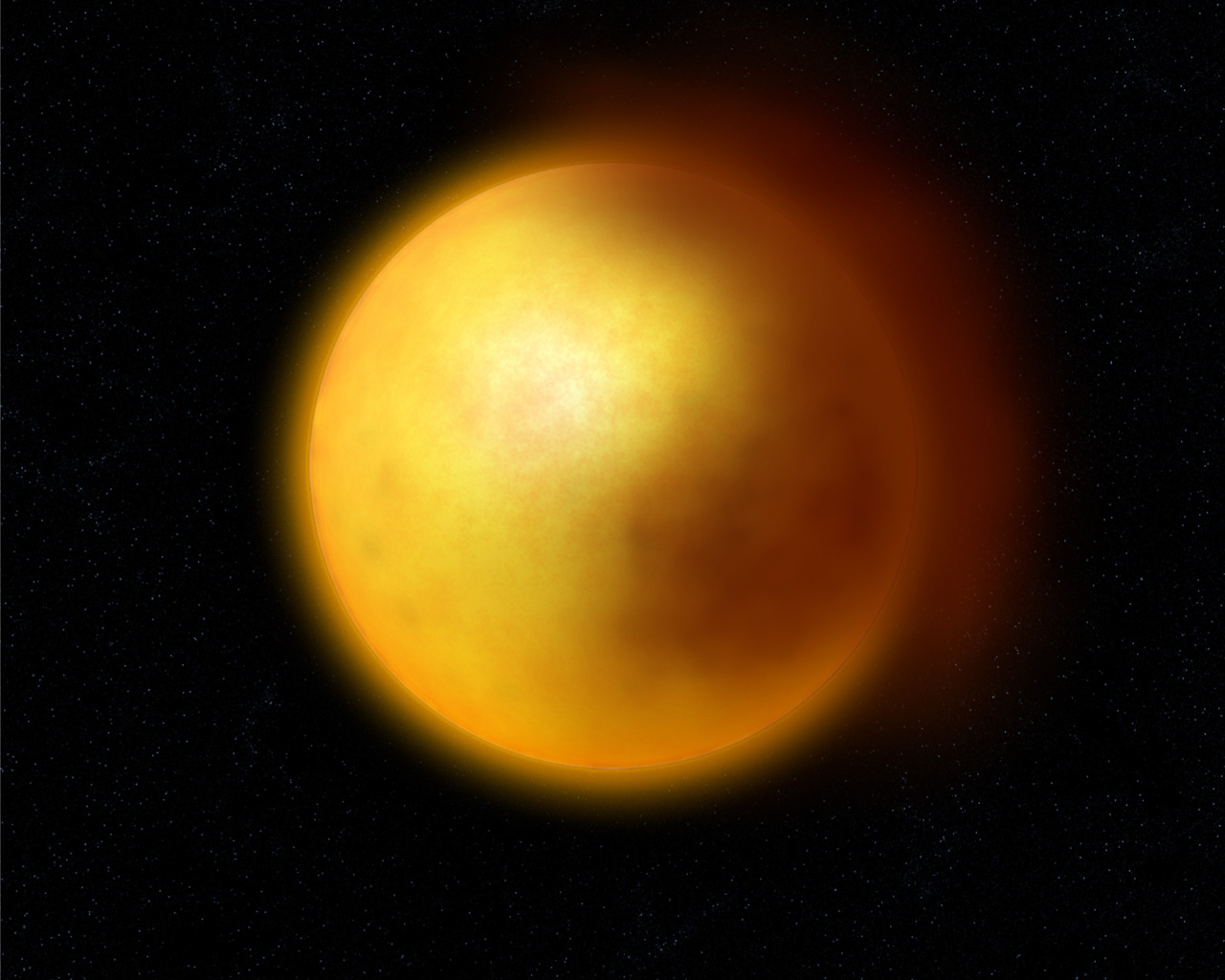 Artist rendering of the surroundings of a R Coronae Borealis star, as inferred from the observations obtained with ESO's Very Large Telescope. Such stars show erratic variability that is thought to arise from the presence of large clouds of dust in their envelope.