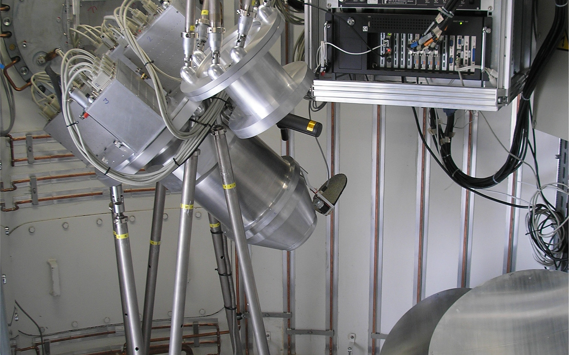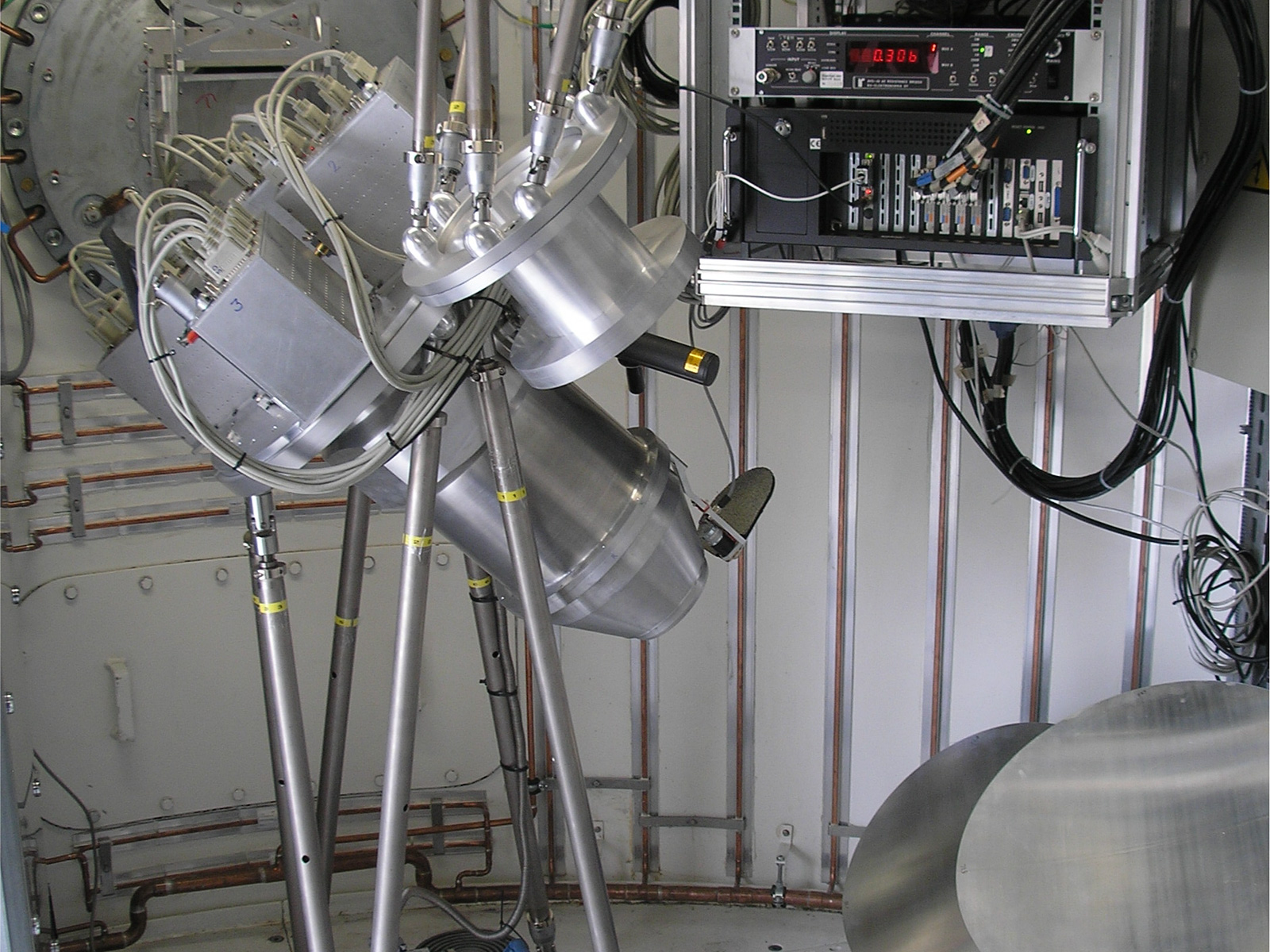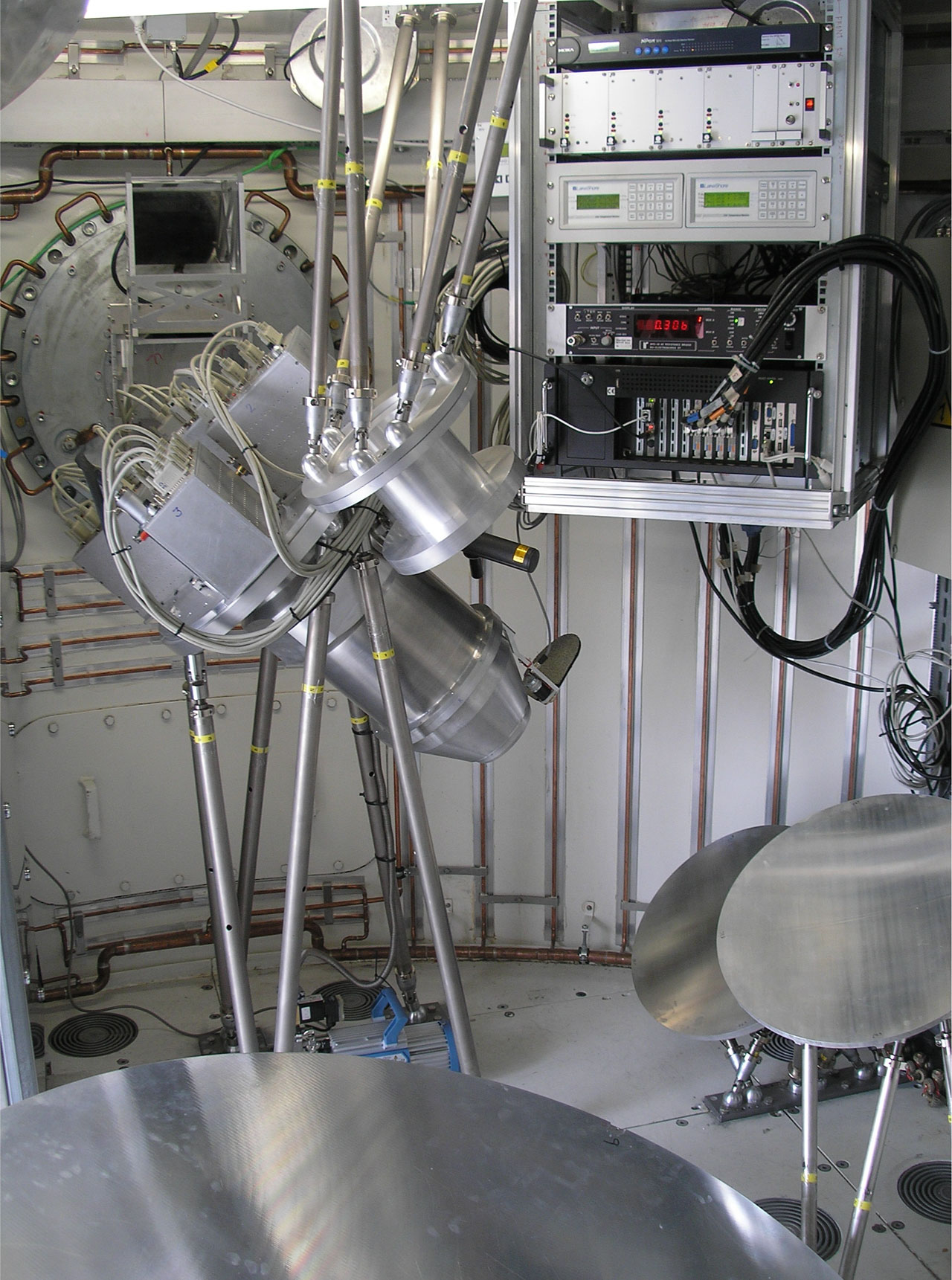The LABOCA Camera installed on the APEX telescope at the 5100m high Chajnantor site in Chile. LABOCA is a 'thermometer camera' with 295 detectors and a field of view of 11.4 arcmin.