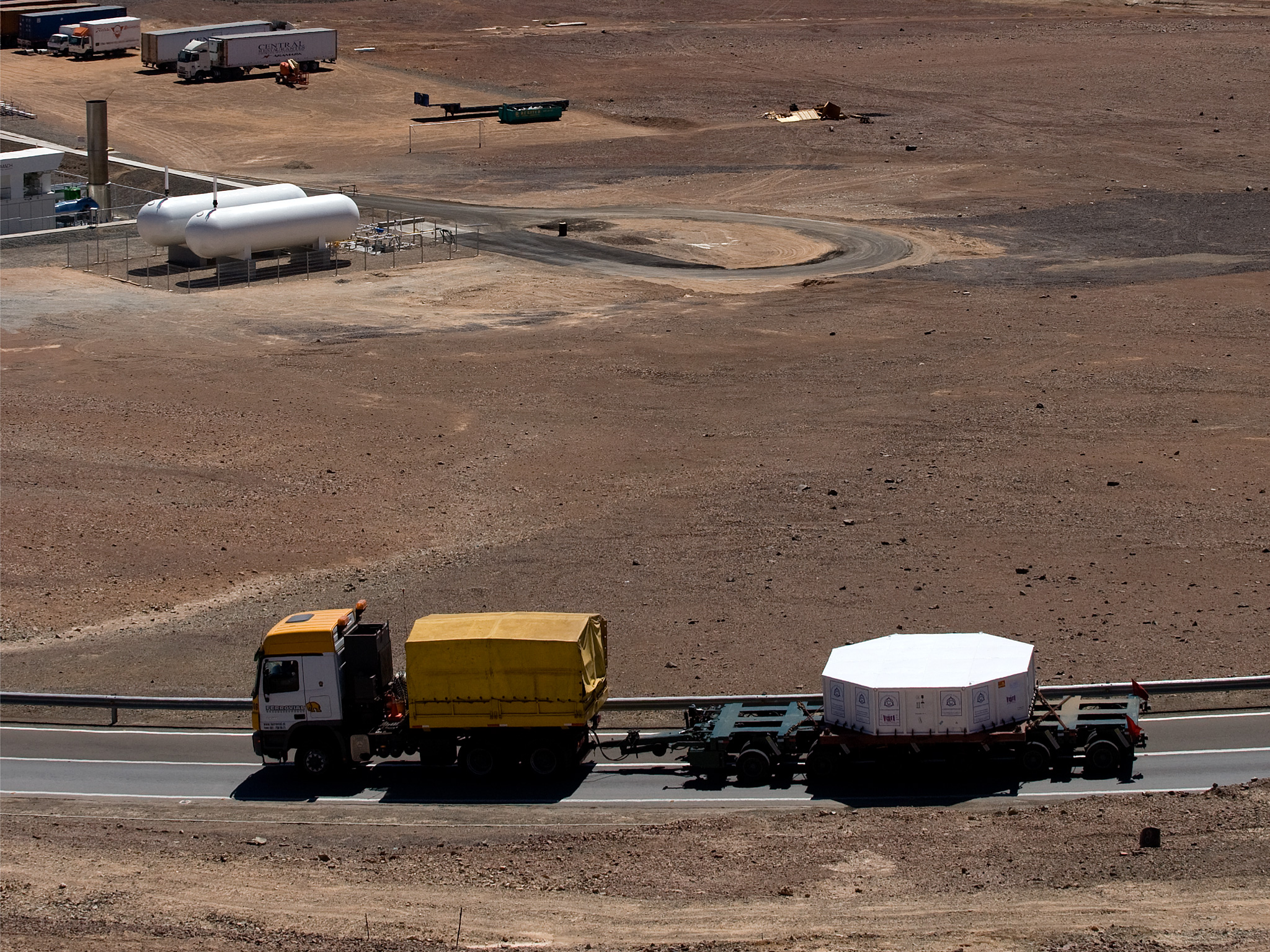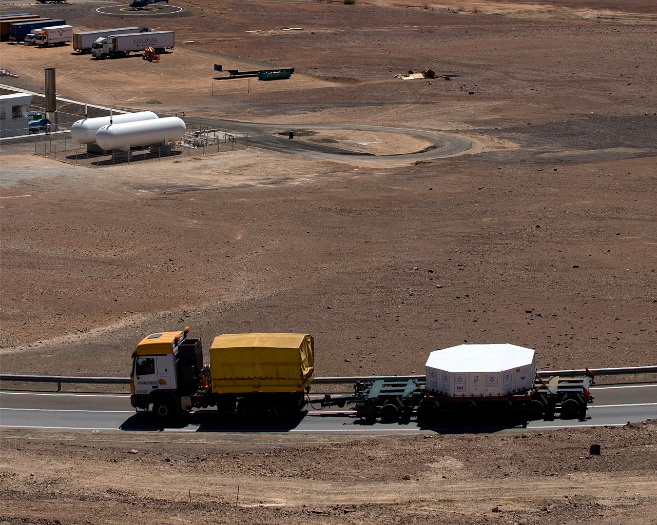 A 4.1-metre diameter primary mirror, a vital part of the world''s newest and fastest survey telescope, VISTA (the Visible and Infrared Survey Telescope for Astronomy) has been delivered to its new mountaintop home at Cerro Paranal, Chile. The mirror arrived over the Easter weekend (22 to 23 March 2008) at the Paranal Observatory where the telescope has been assembled at an altitude of 2518m, in Chile's Atacama Desert.