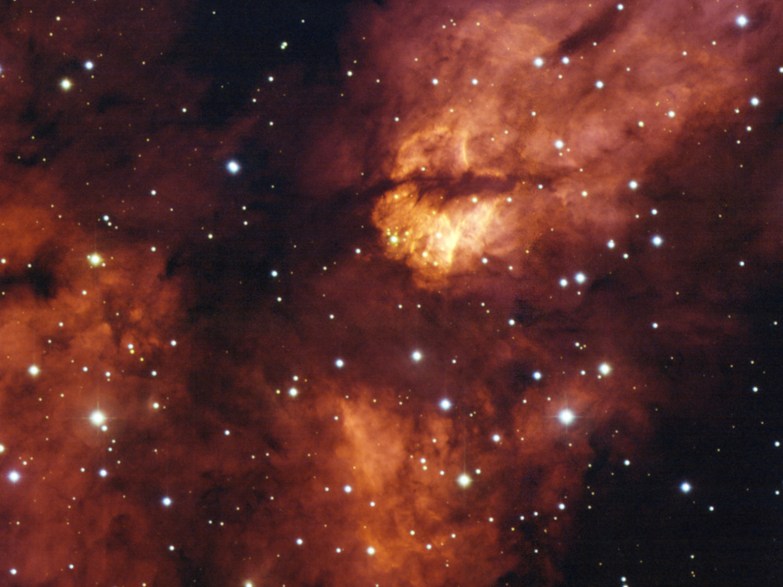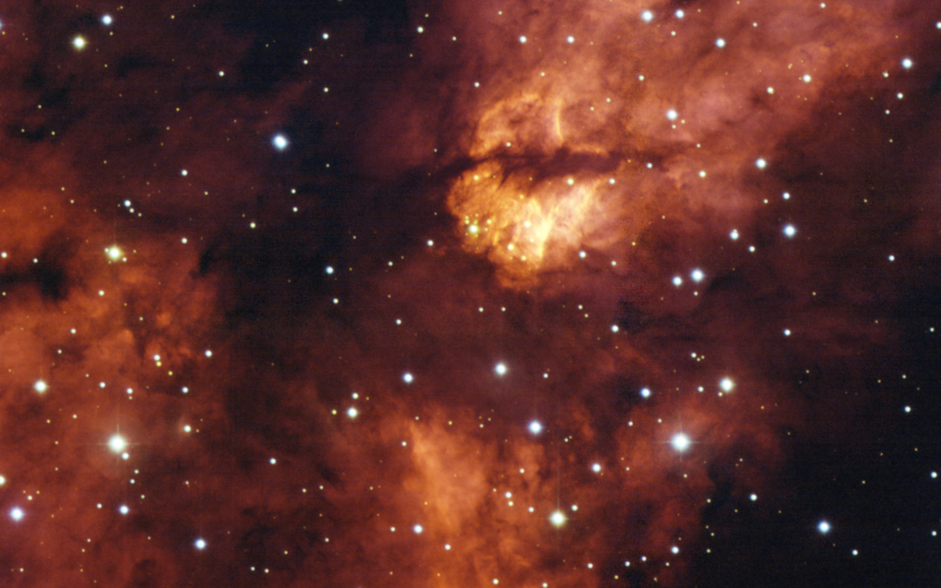 The dense star cluster RCW 38 glistens about 5,500 light years away in the direction of the constellation Vela (the Sails). RCW 38 is an "embedded" cluster, in that the nascent cloud of dust and gas still envelops its stars. There, young, titanic stars bombard fledgling suns and planets with powerful winds and large amount of light, helped in their devastating task by short-lived, massive stars that explode as supernovae. In some cases, this energetic onslaught cooks away the matter that may eventually form new planetary systems. Scientists think that our own Solar System emerged from such a dramatic environment.
