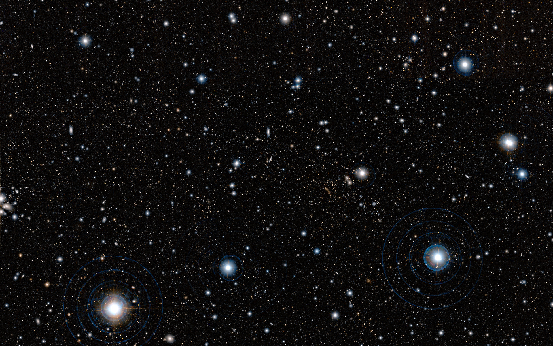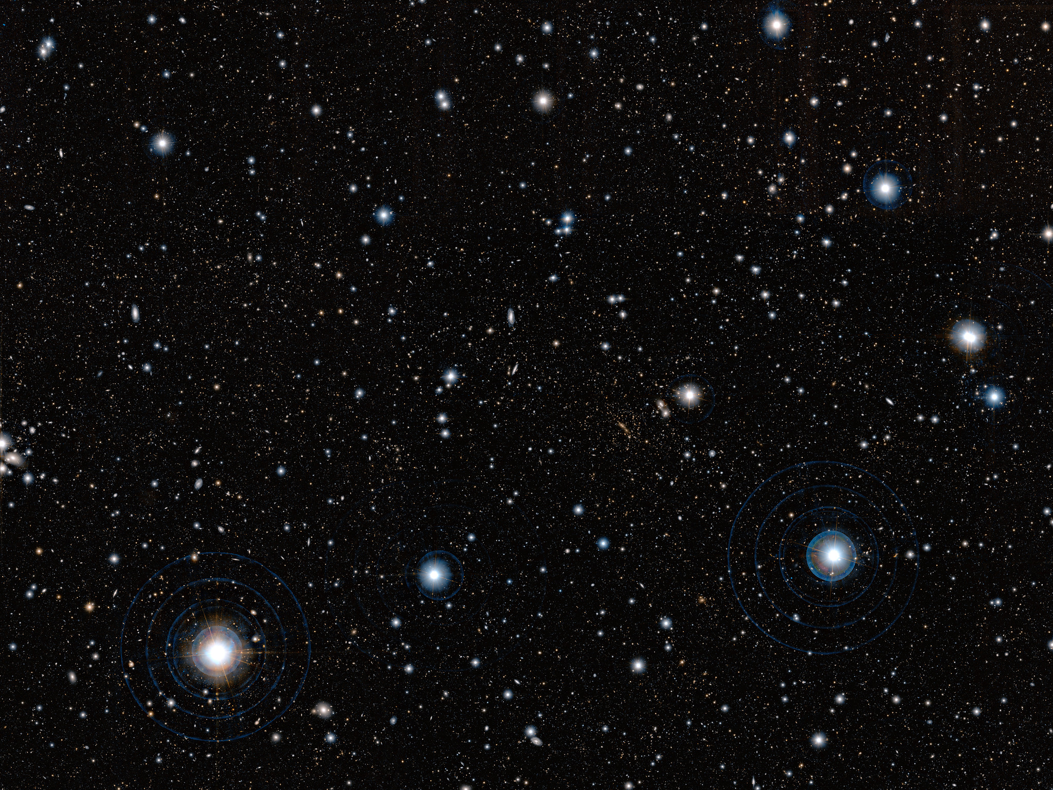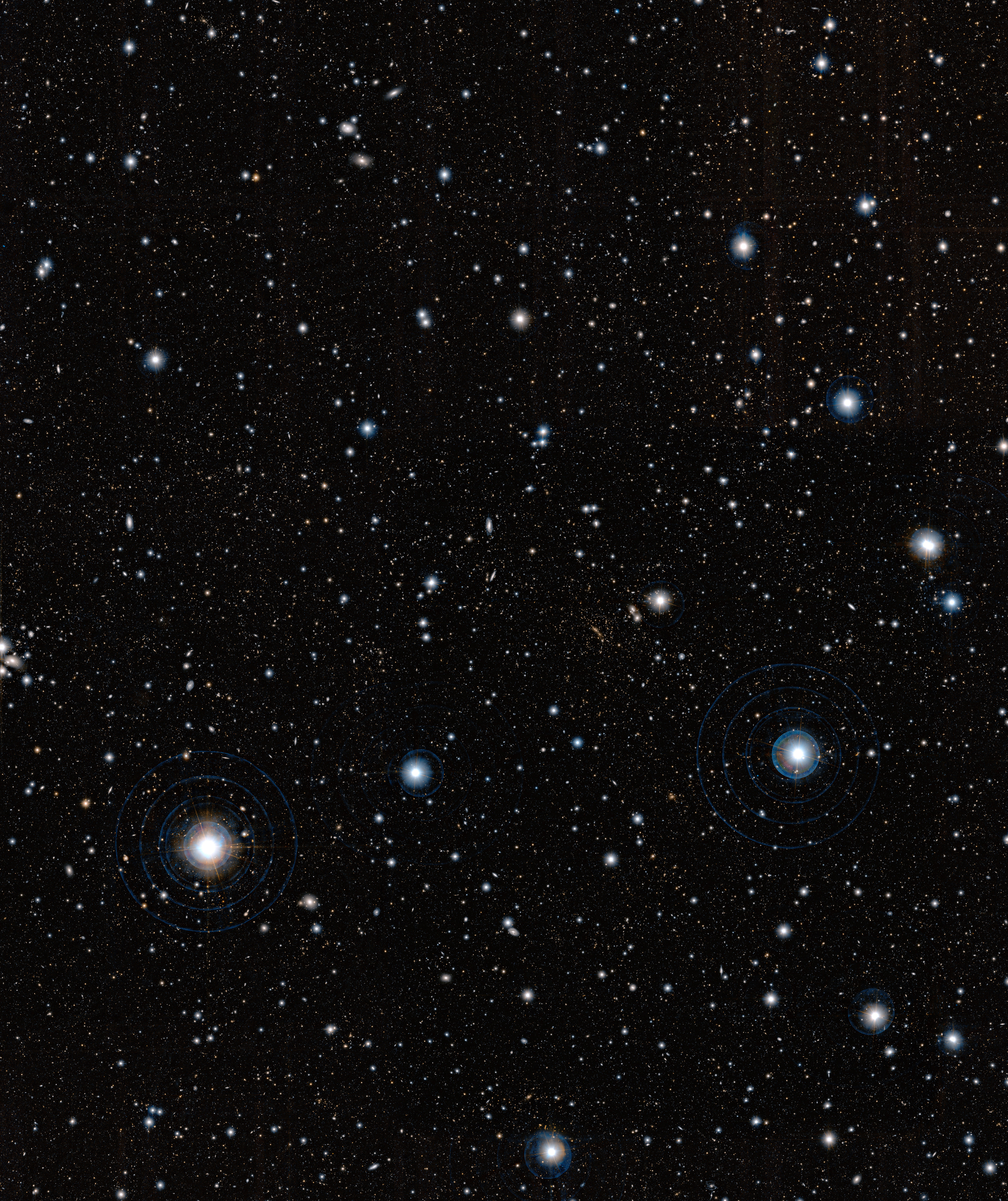 This image, obtained with the Subaru Telescope, operated by the National Astronomical Observatory of Japan was used by a team of astronomers, led by Masayuki Tanaka from the European Southern Observatory (ESO), to uncover a gigantic, previously unknown assembly of galaxies located almost seven billion light-years away from us. This structure was confirmed by further observations made using ESO’s Very Large Telescope and Subaru. It is the first observation of such a prominent galaxy structure in the distant Universe, providing further insight into the cosmic web and how it formed.