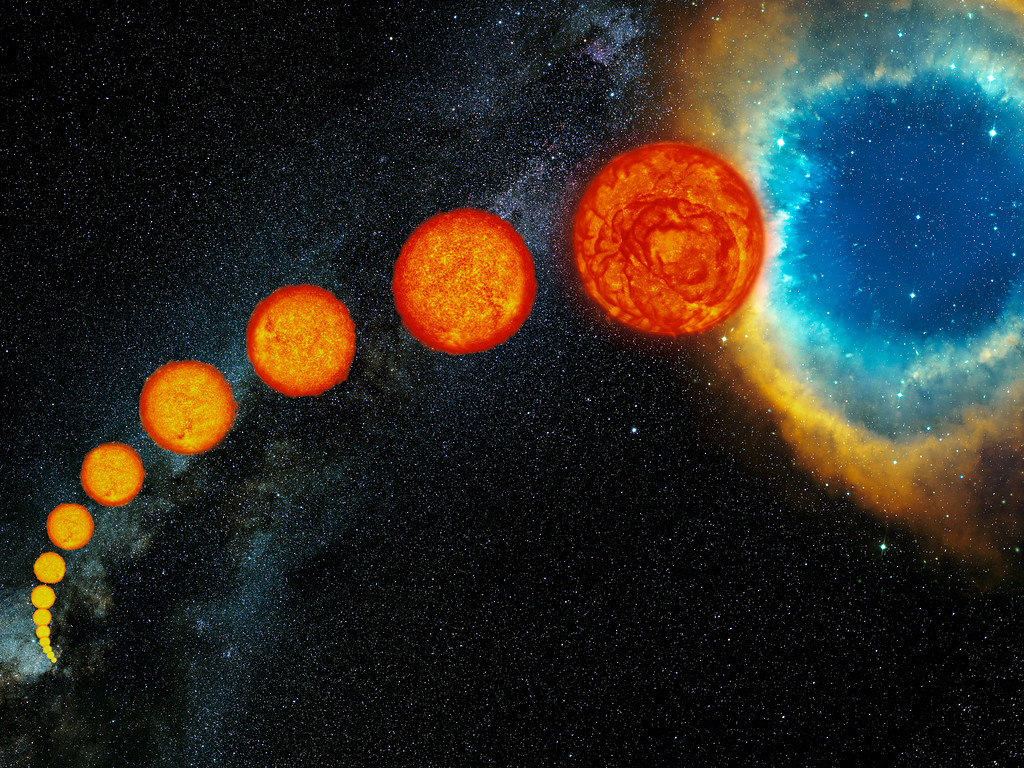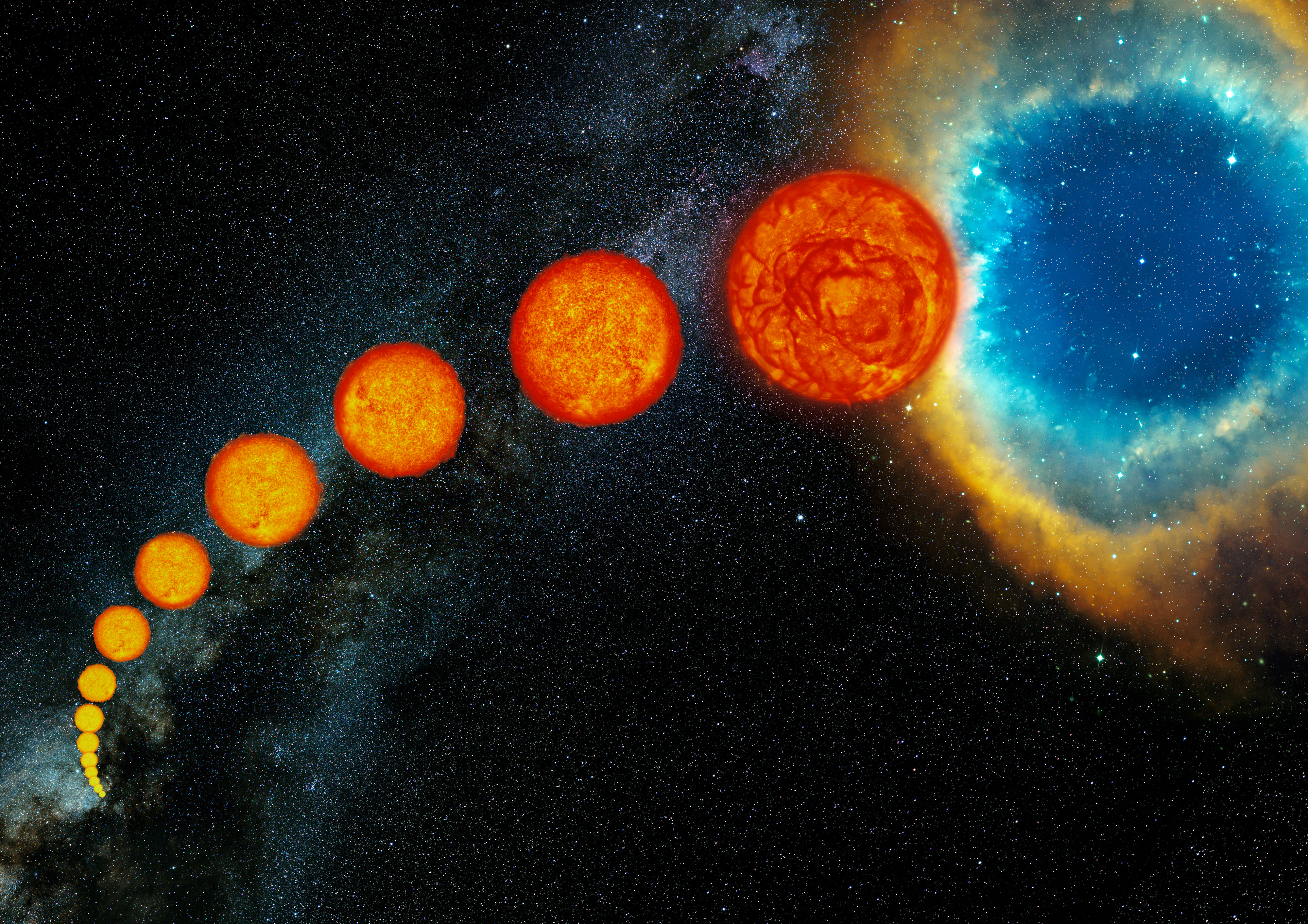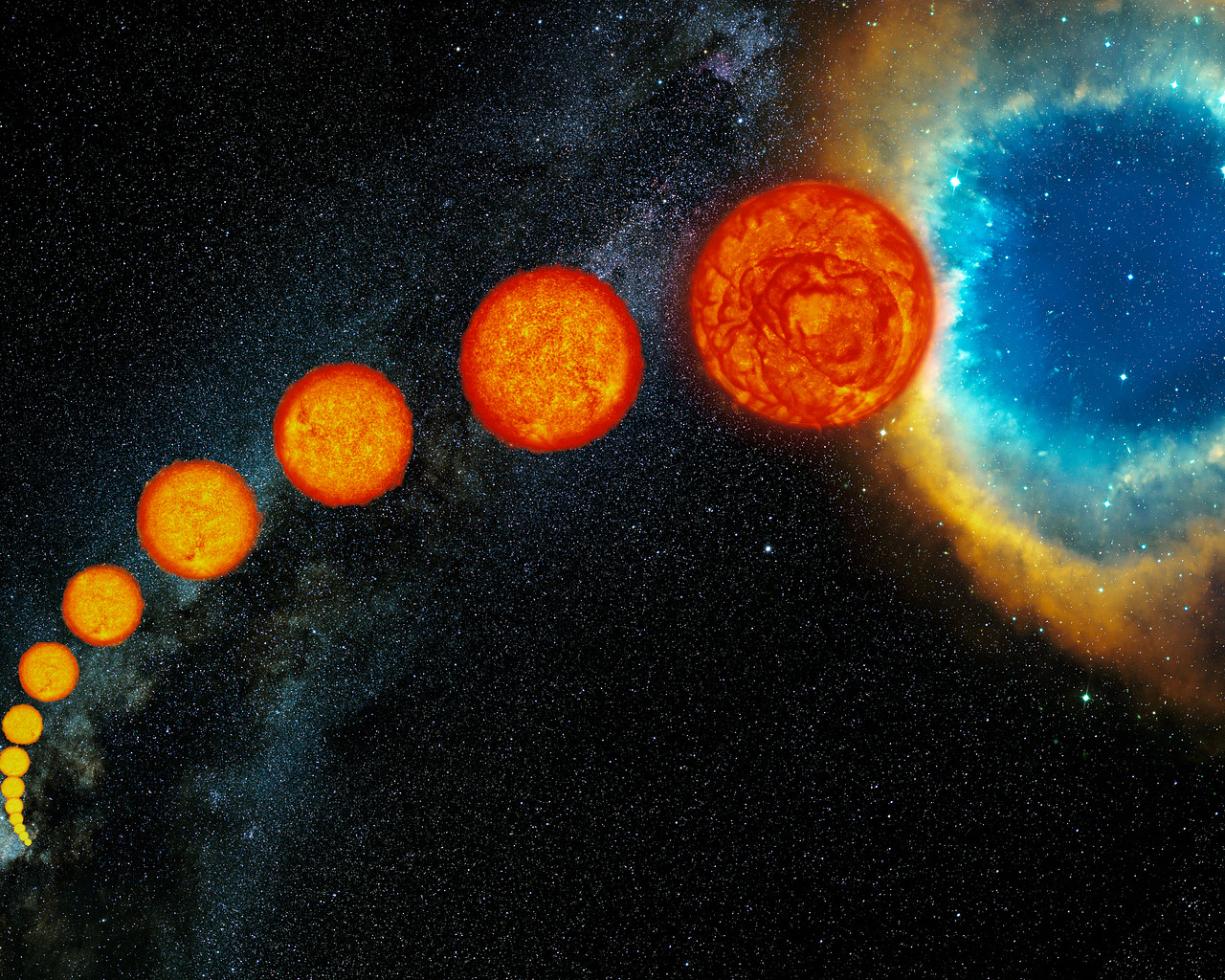 Born from clouds of gas and dust, stars like our Sun spend most of their lifetime slowly burning their primary nuclear fuel, hydrogen, into the heavier element helium. After leading this bright and shiny life for several billion years, their fuel is almost exhausted and they start swelling, pushing the outer layers away from what has turned into a small and very hot core. These “middle-aged” stars become enormous, hence cool and red — red giants. All red giants exhibit a slow oscillation in brightness due their rhythmic “breathing” in and out, and one third of them are also affected by additional, slower and mysterious changes in their luminosity. After this rapid and tumultuous phase of their later life, these stars do not end in dramatic explosions, but die peacefully as planetary nebulae, blowing out everything but a tiny remnant, known as white dwarf.