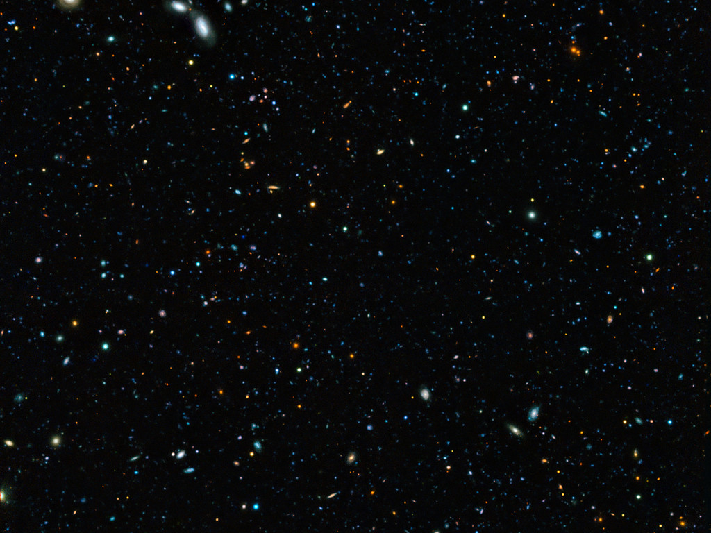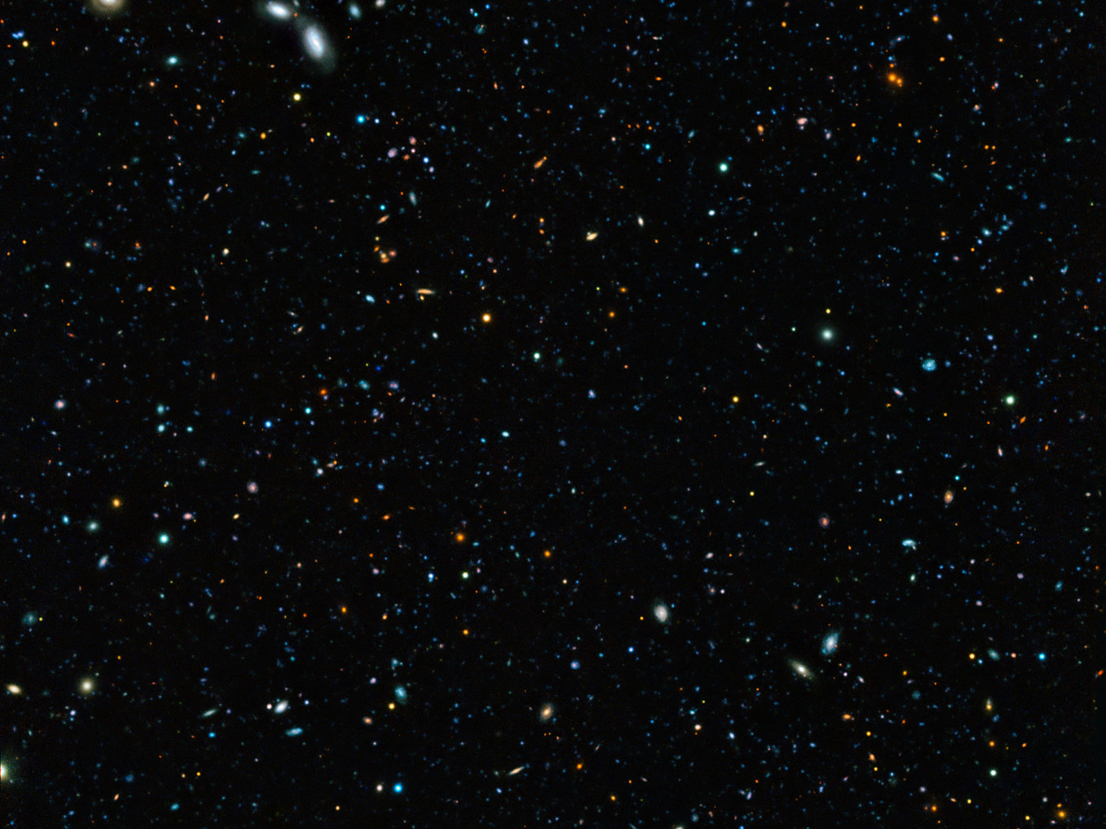 This composite image of the GOODS-South field — the result of an extremely deep survey using two of the four giant 8.2-metre telescopes composing ESO’s Very Large Telescope (VLT) and a unique custom-built filter — shows some of the faintest galaxies ever seen. It also allows astronomers to determine that 90% of galaxies whose light took 10 billion years to reach us have gone undiscovered.