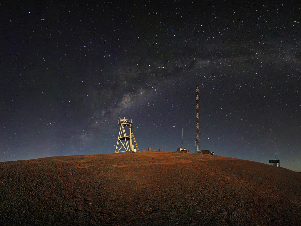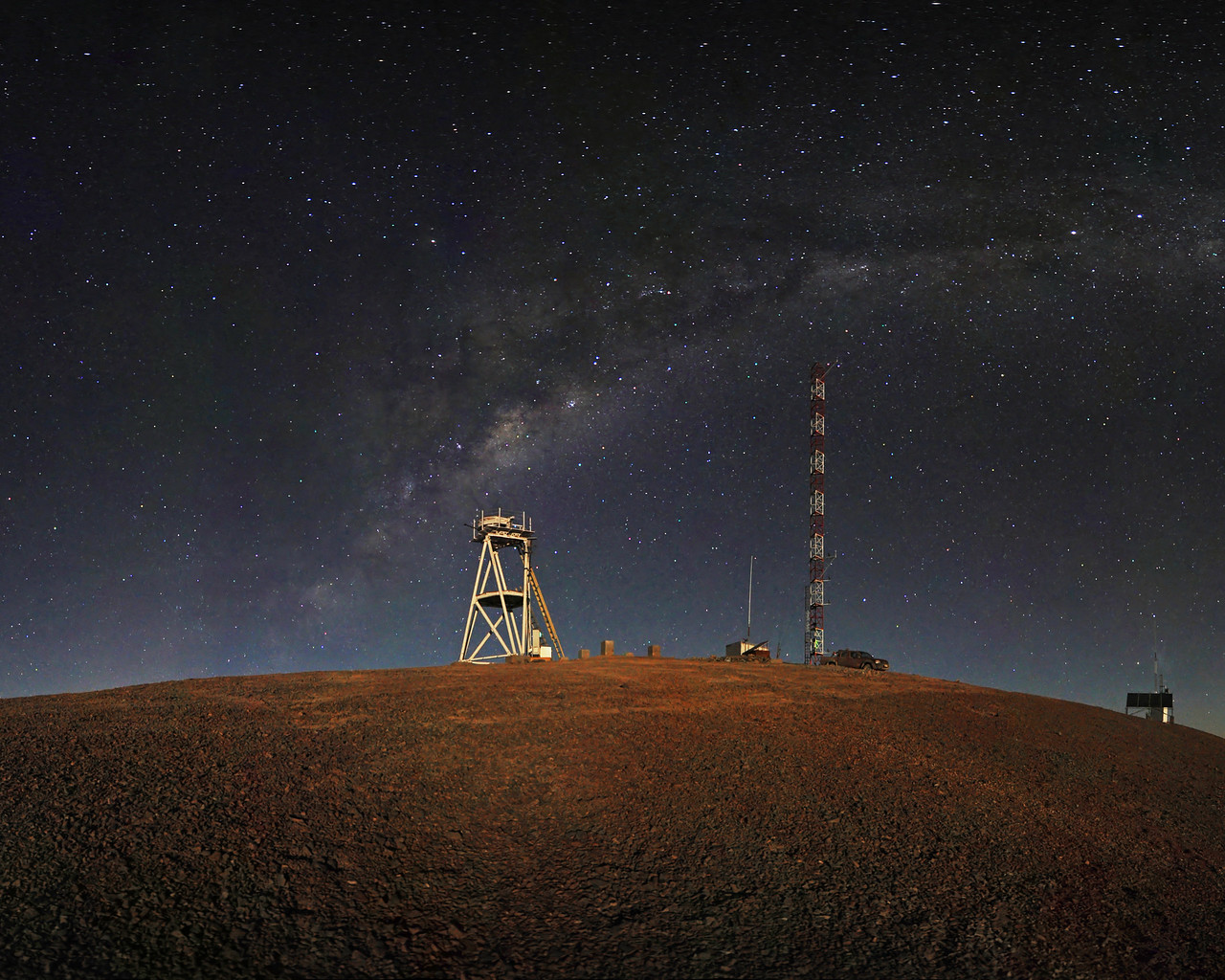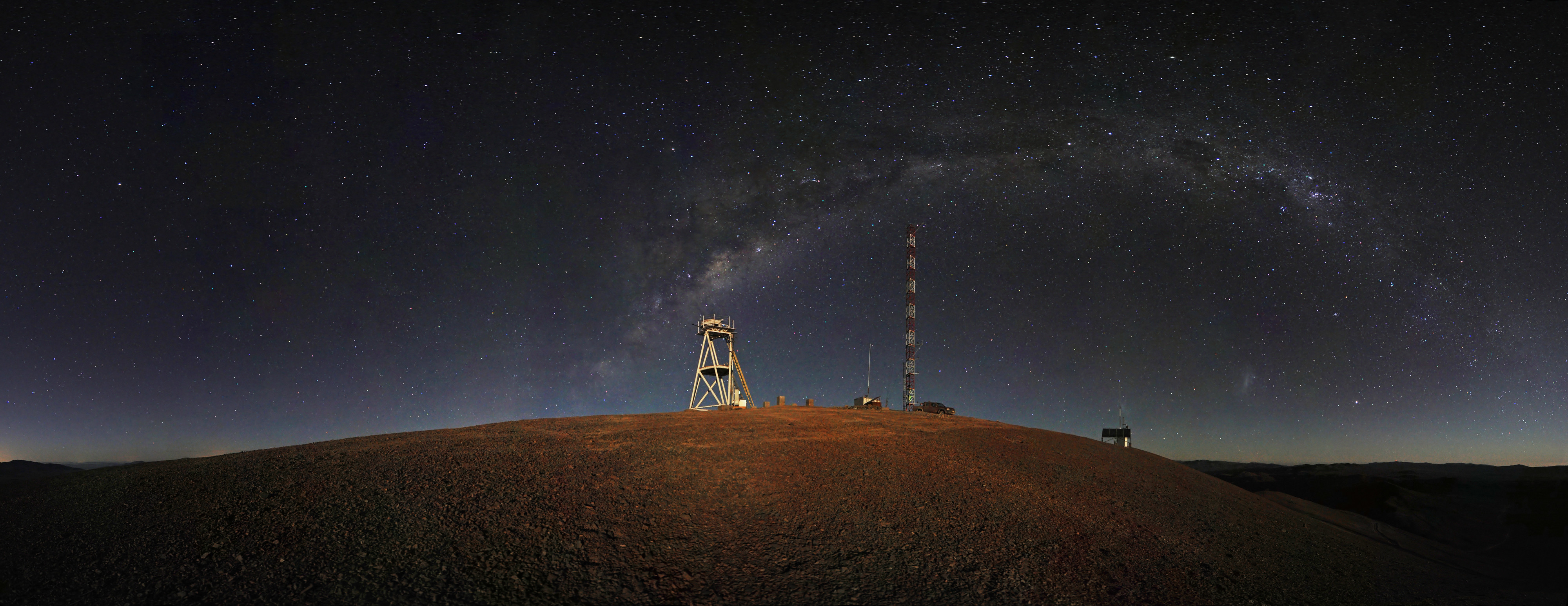 This night-time panorama shows Cerro Armazones in the Chilean desert, near ESO's Paranal Observatory, site of the Very Large Telescope (VLT). Cerro Armazones was chosen as the site for the planned European Extremely Large Telescope (E-ELT), which, with its 40-metre-class diameter mirror, will be the world’s biggest eye on the sky.