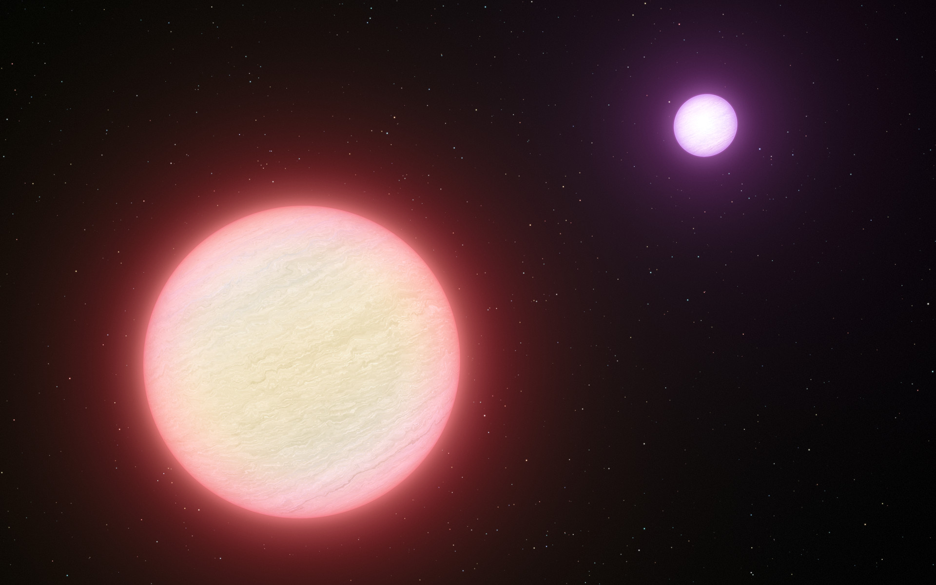 This artist’s impression shows the pair of brown dwarfs named CFBDSIR 1458+10. Observations with ESO’s Very Large Telescope and two other telescopes have shown that this pair is the coolest pair of brown dwarfs found so far. The colder of the two components (shown in the background) is a candidate for the brown dwarf with the lowest temperature ever found — the surface temperature is similar to that of a cup of freshly made tea. The two components are both about the same size as the planet Jupiter.