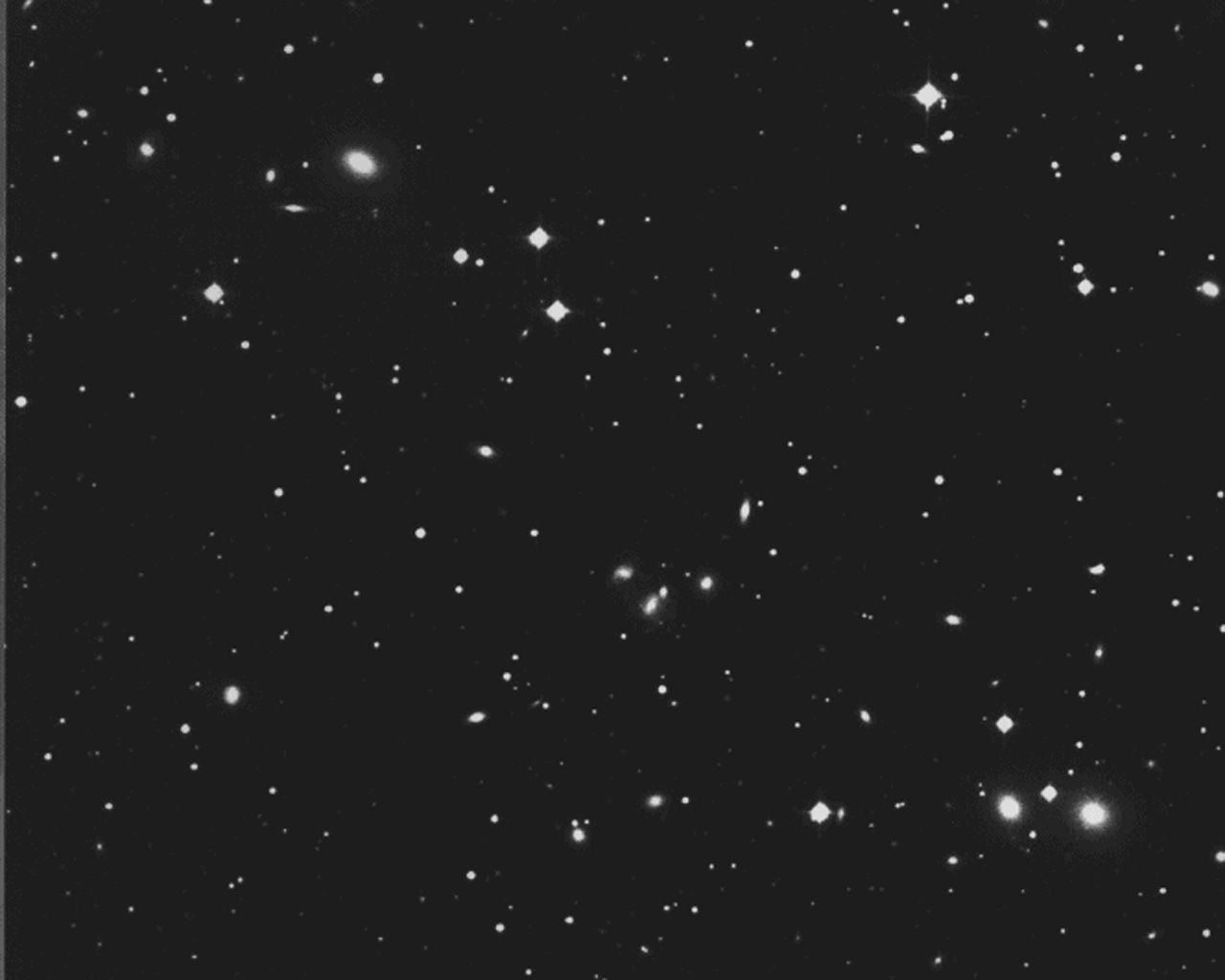 This photo shows the central region of the rich Abell cluster A548 which is seen in the southern constellation of Lepus (The Hare).