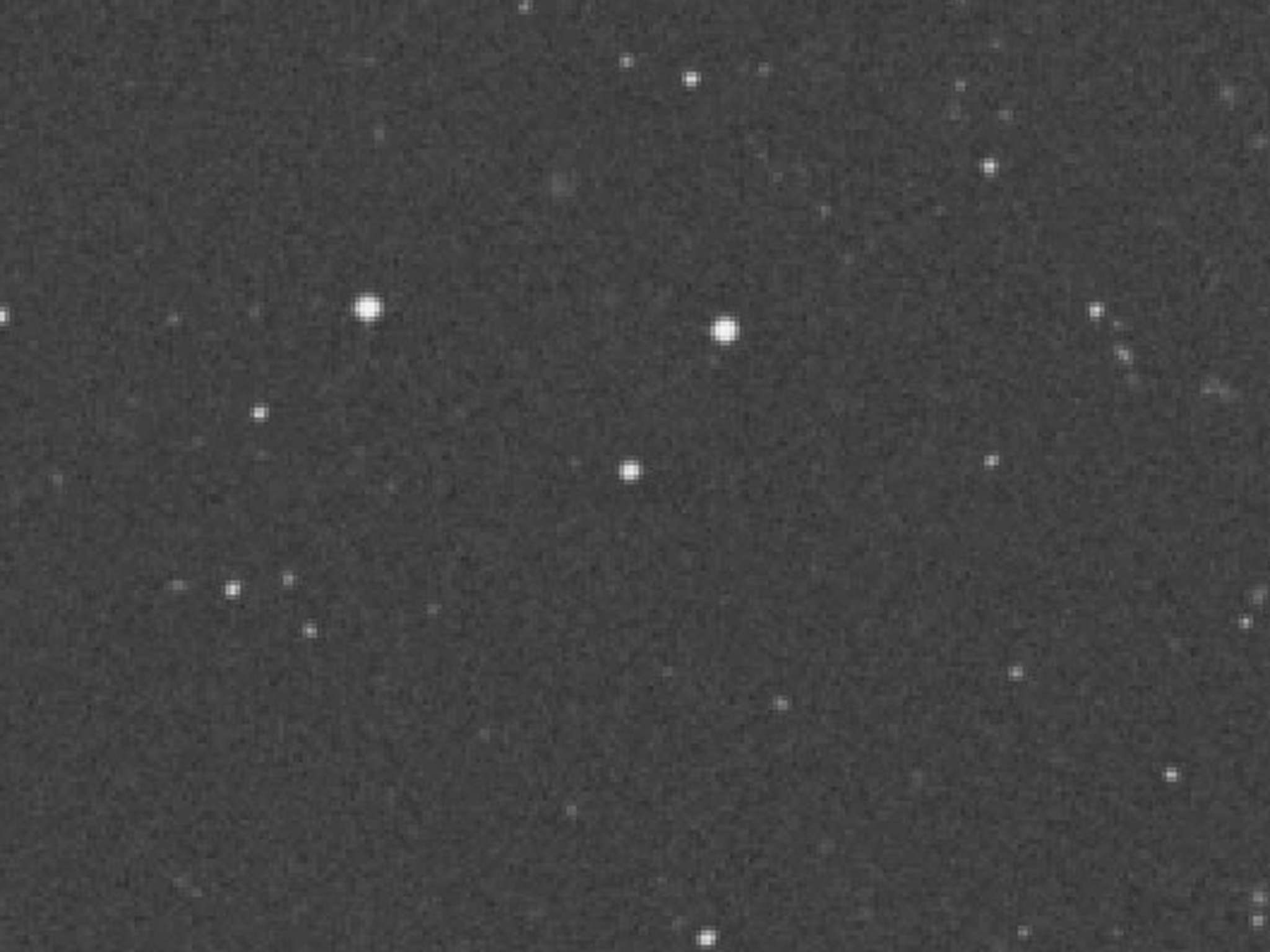 This is a direct image of HE 2347-4342 at the centre of a 7.5 x 7.5 arcmin 2 sky field. HE 2347-4342 was discovered in October 1995 by Lutz Wisotzki from the University of Hamburg; the 'HE' stands for Hamburg-ESO . The visual magnitude is 16.1, i.e. `only' 10,000 times fainter than what can be seen with the naked eye; this makes it one of the apparently brightest quasars in the sky found so far. Still, it is quite distant - the measured redshift is z = 2.885.