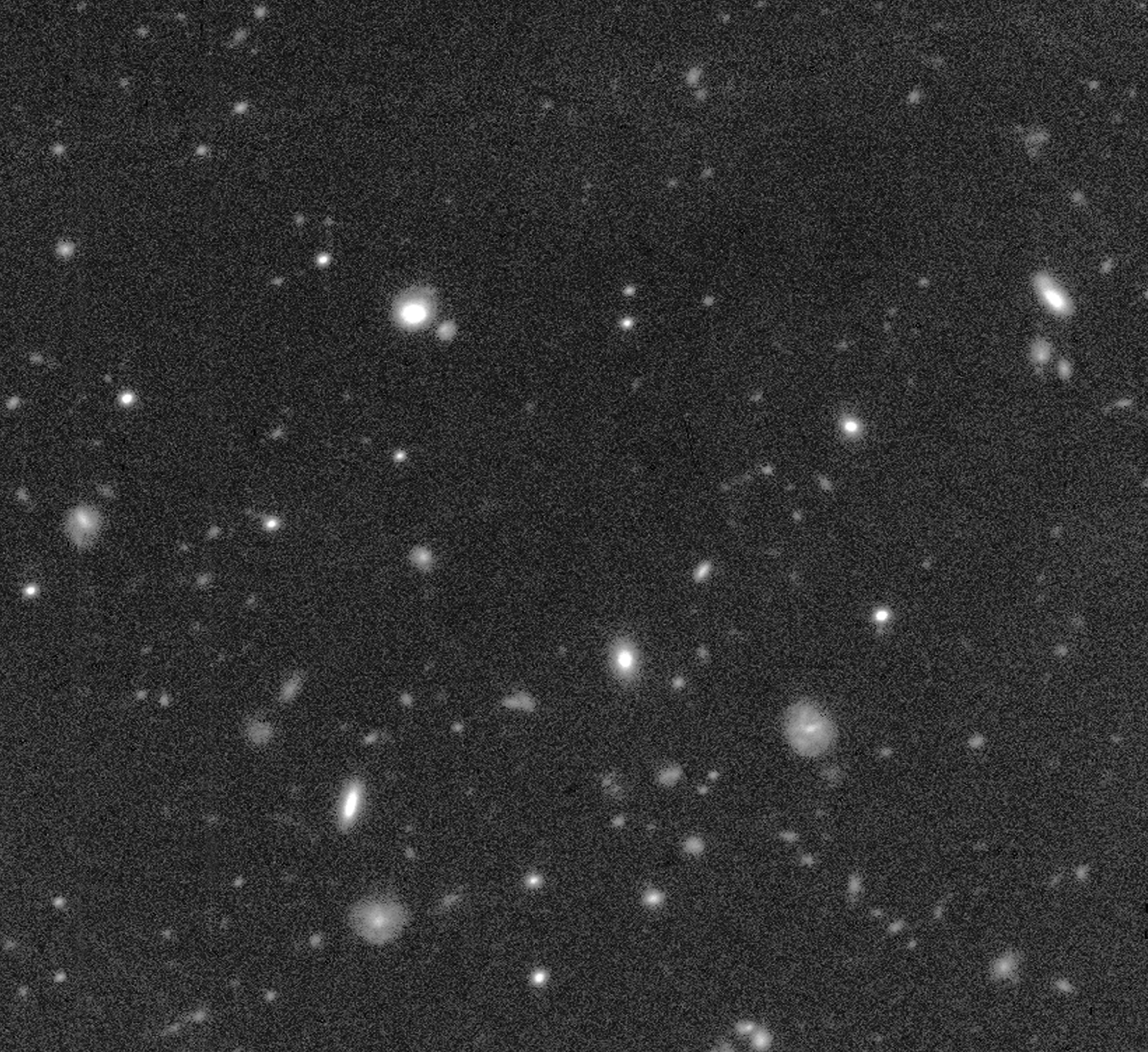 This photo is a reproduction of a combination of five 15-minute exposures with the VLT Test Camera. They were obtained through a red filtre on June 5, 1998, during a spare period when no technical tests were scheduled. They cover a part of the Hubble Deep Field - South (about 1.3 x 1.3 arcmin, or about 1/400th of the area of the Full Moon). It is the VLT's first real look into deep space and represents a most promising demonstration of the VLT's future possibilities.