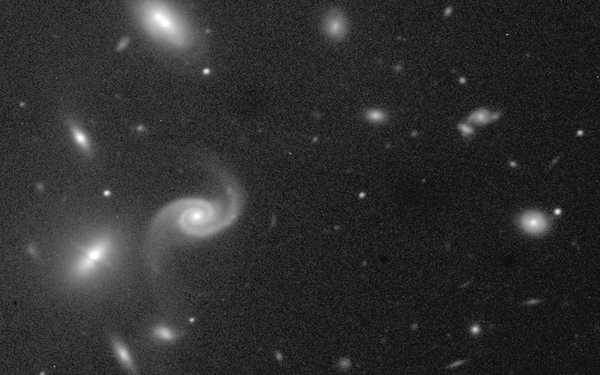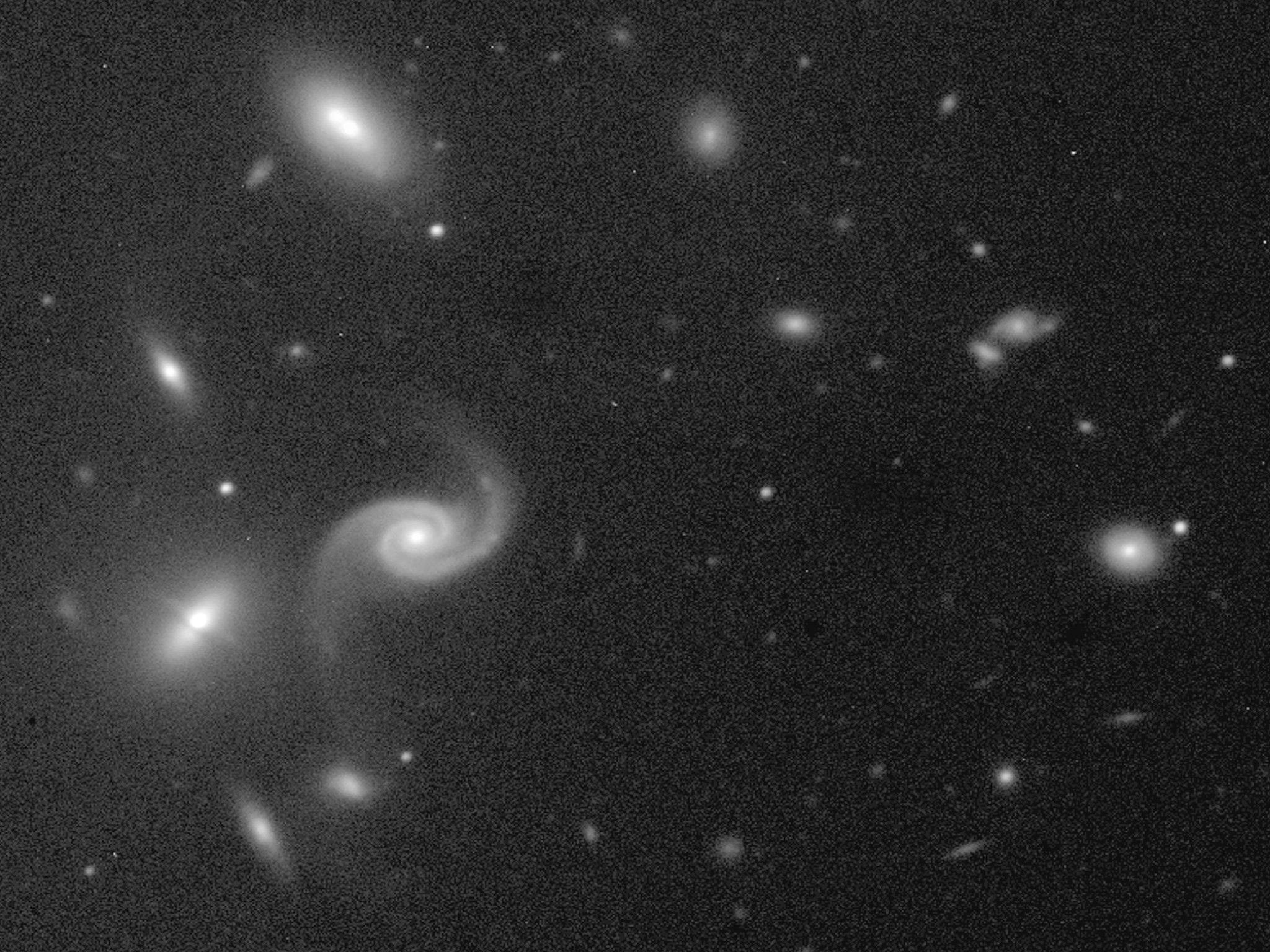 Produced from a 5-min near-infrared exposure, this image was obtained during the night of First Light of the FORS1 instrument (September 15, 1998). It shows an enlargment of the sky field near the quasar PB5763, showing the individual members of this cluster of galaxies in more detail.