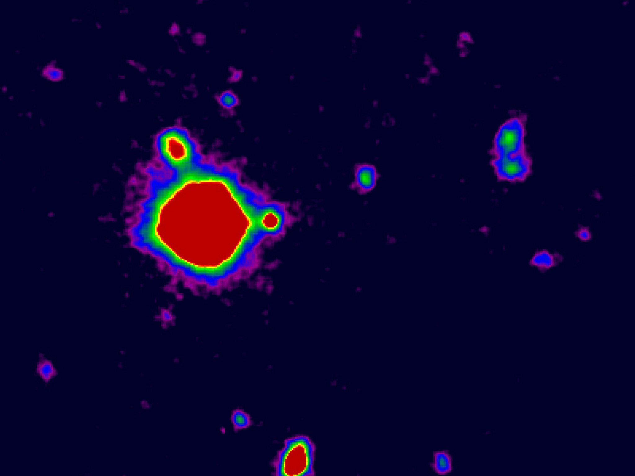 The image is a false-colour reproduction of a B-band image of the field around the radio-weak quasar J2233-606 in the Hubble Deep Field South (HDF-S)