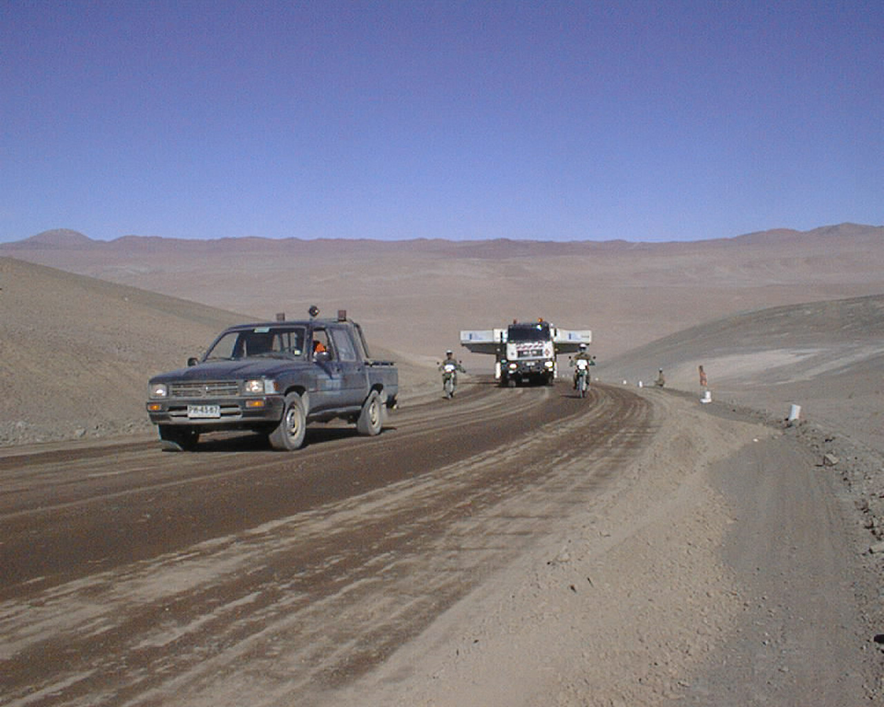 After turning off from the "Old Panamericana Road" the transport moves slowly up the steep road towards Paranal.