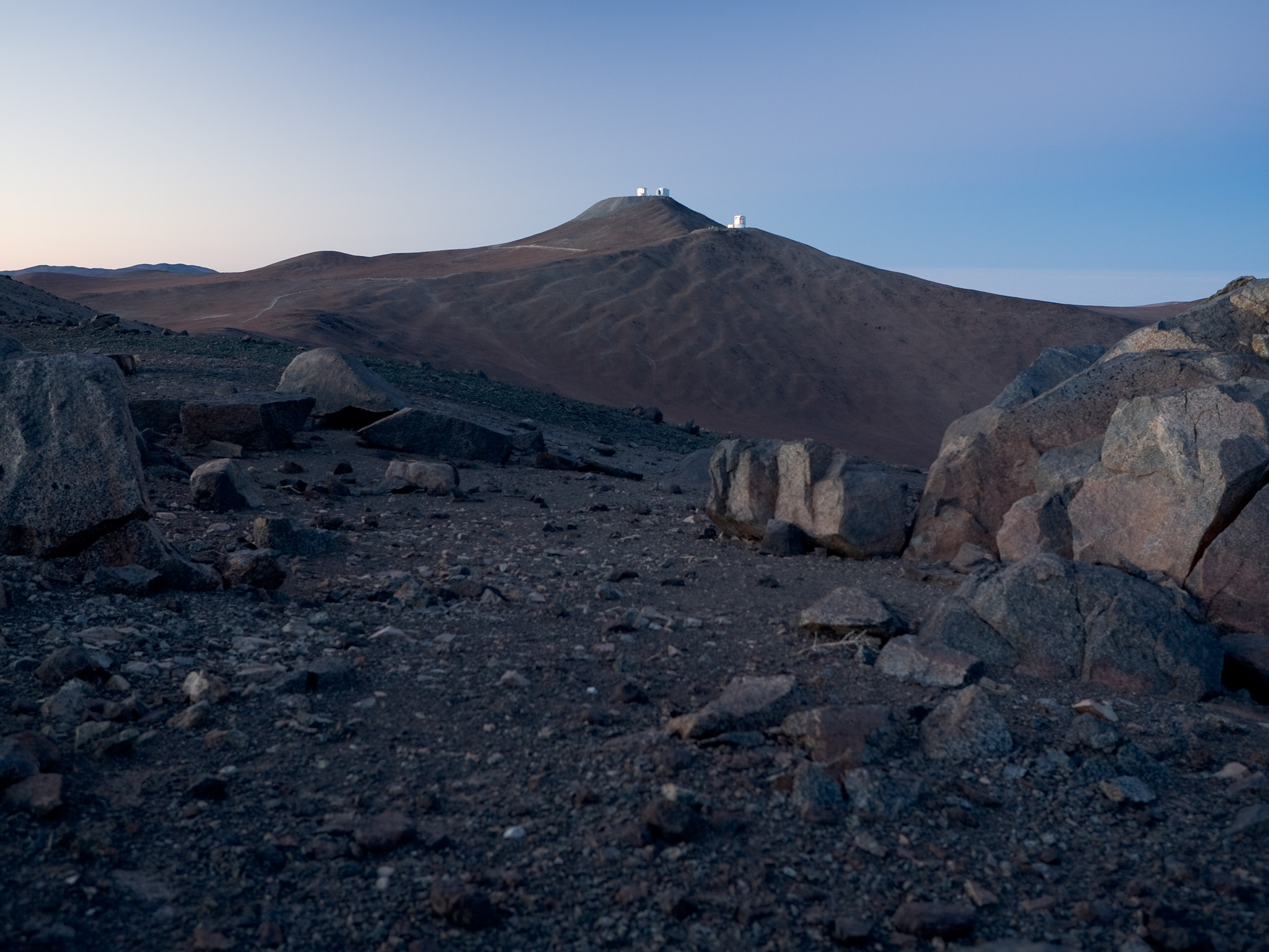 Paranal, the site of the VLT, was chosen for its unique characteristics: extreme dryness, very low cloud coverage, high altitude, and distant from any source of pollution. This wide-angle shot of the Atacama desert around Paranal, which shows the VLT and, in foreground, VISTA, summarizes it all. Photo taken in November 2007.
