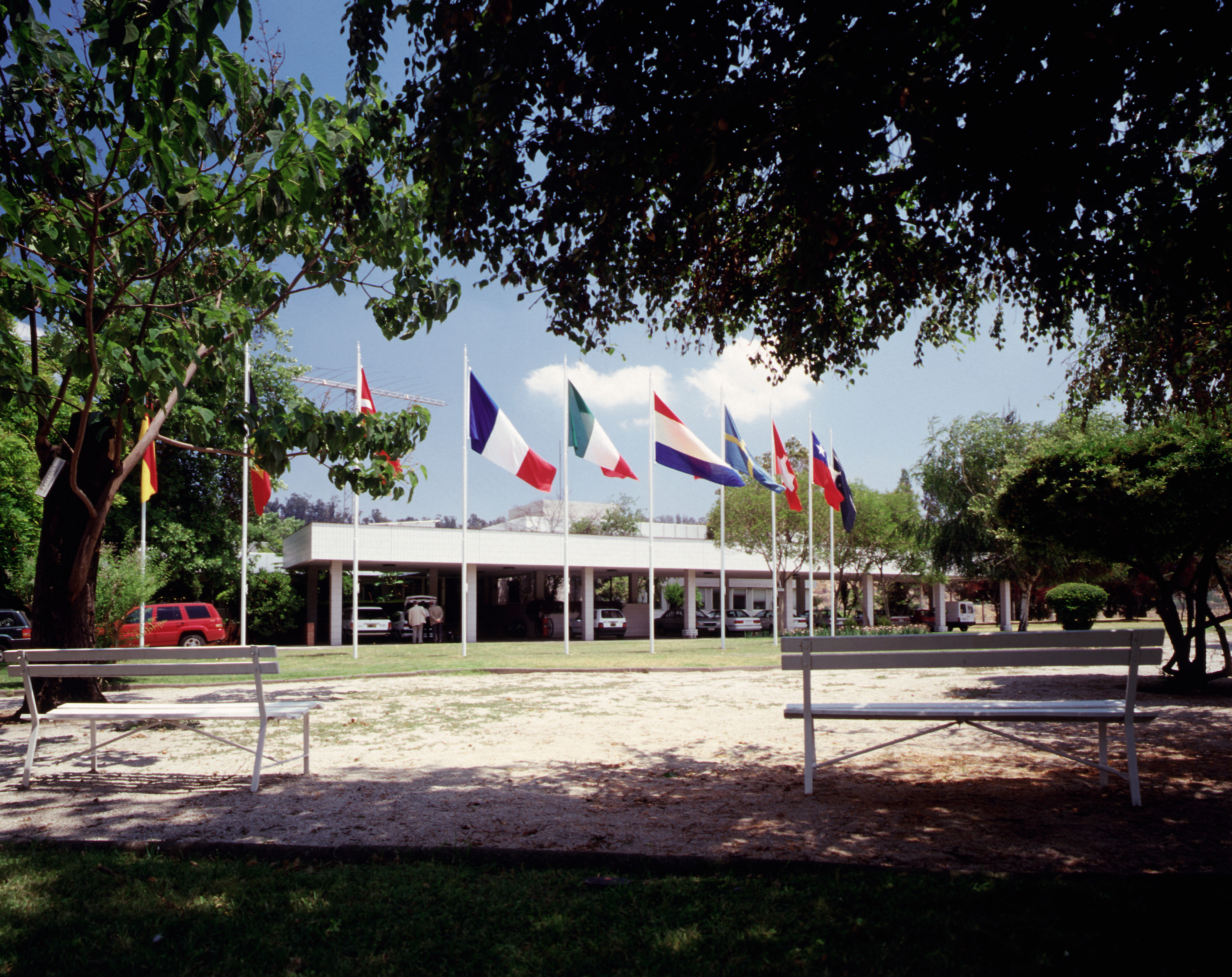 ESO Headquarters in Chile is situated next to the UN building in the Vitacura district - it was constructed in 1967-69 and houses the ESO/Chile administration, as well as offices for the ESO astronomers and a comprehensive library.