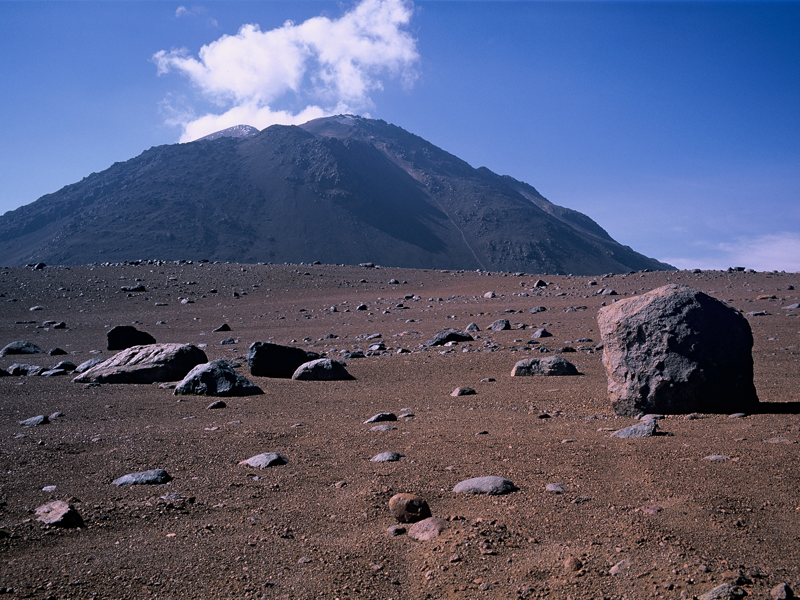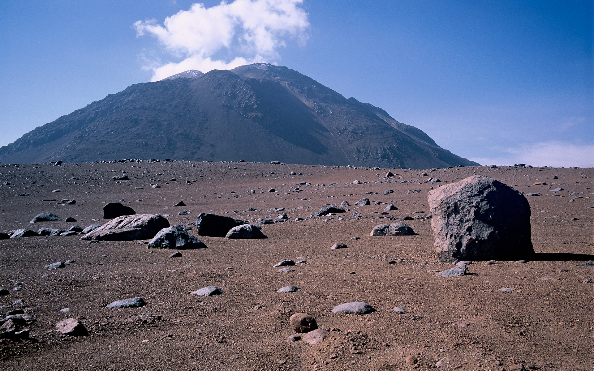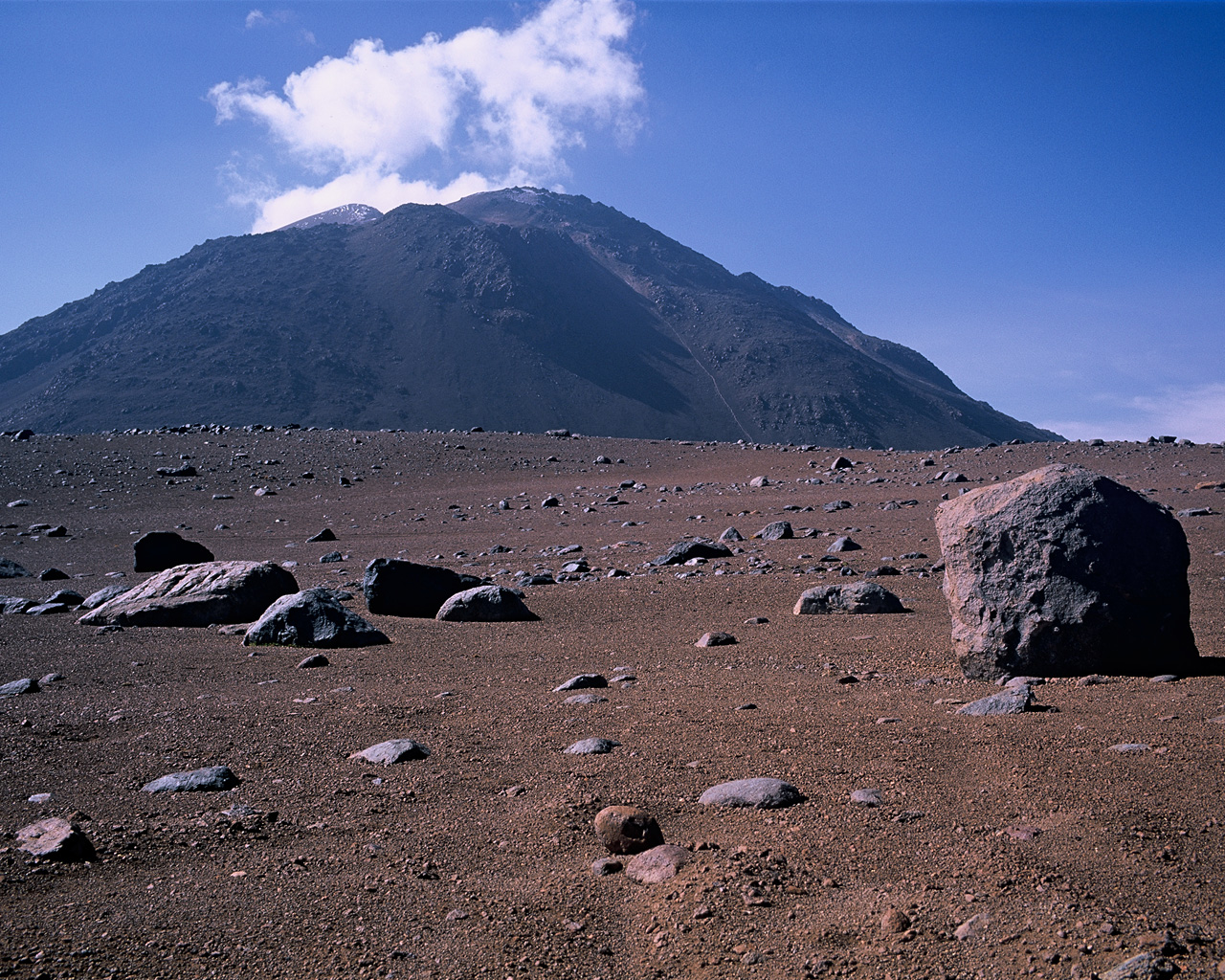 Cerro Chascon is located on the eastern boundary of the ALMA site. This picture was taken looking south from Pampa la Bola. Image taken in March 2002.