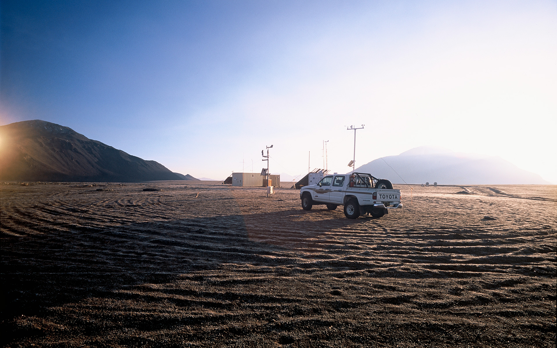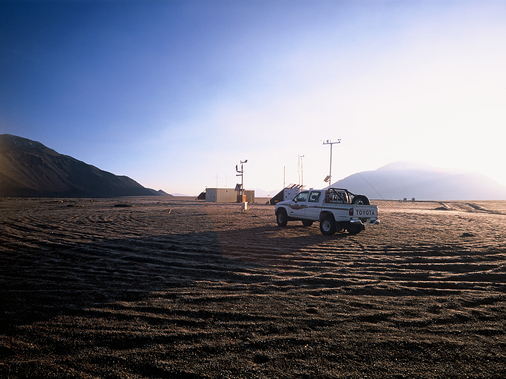 Service vehicle and containers at the ESO - NRAO Testing Area. Image taken in March 2002.