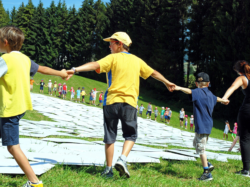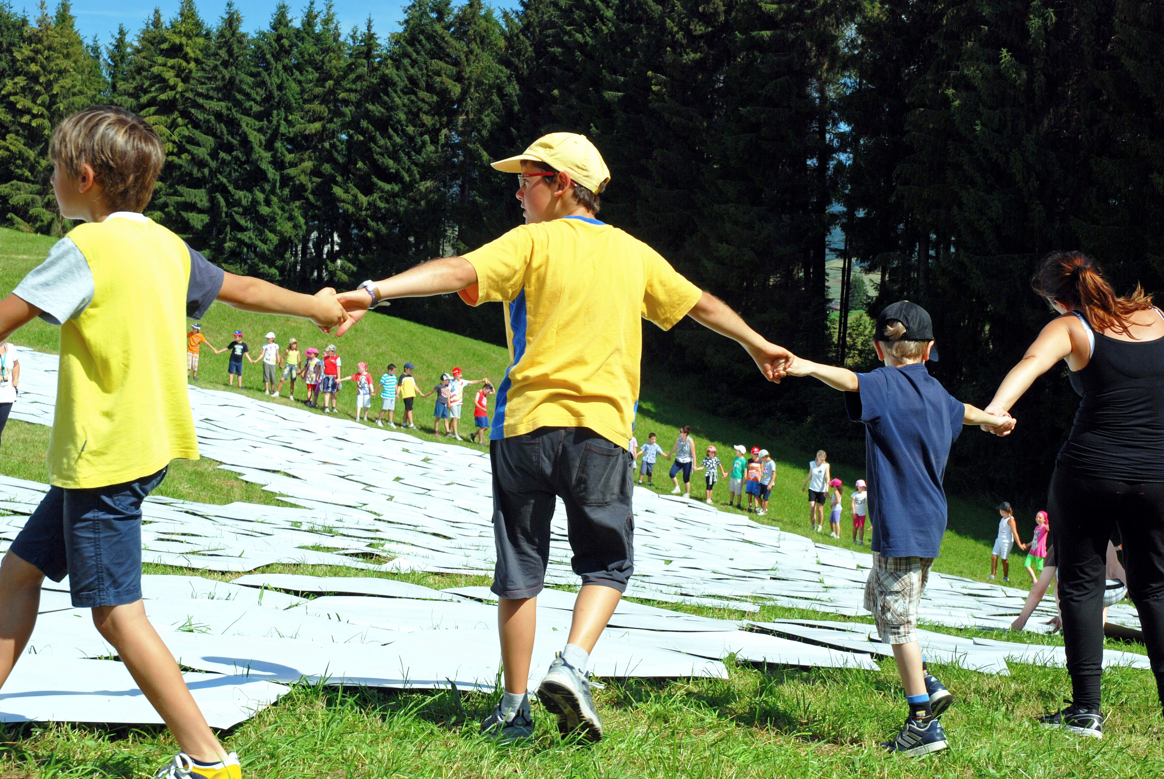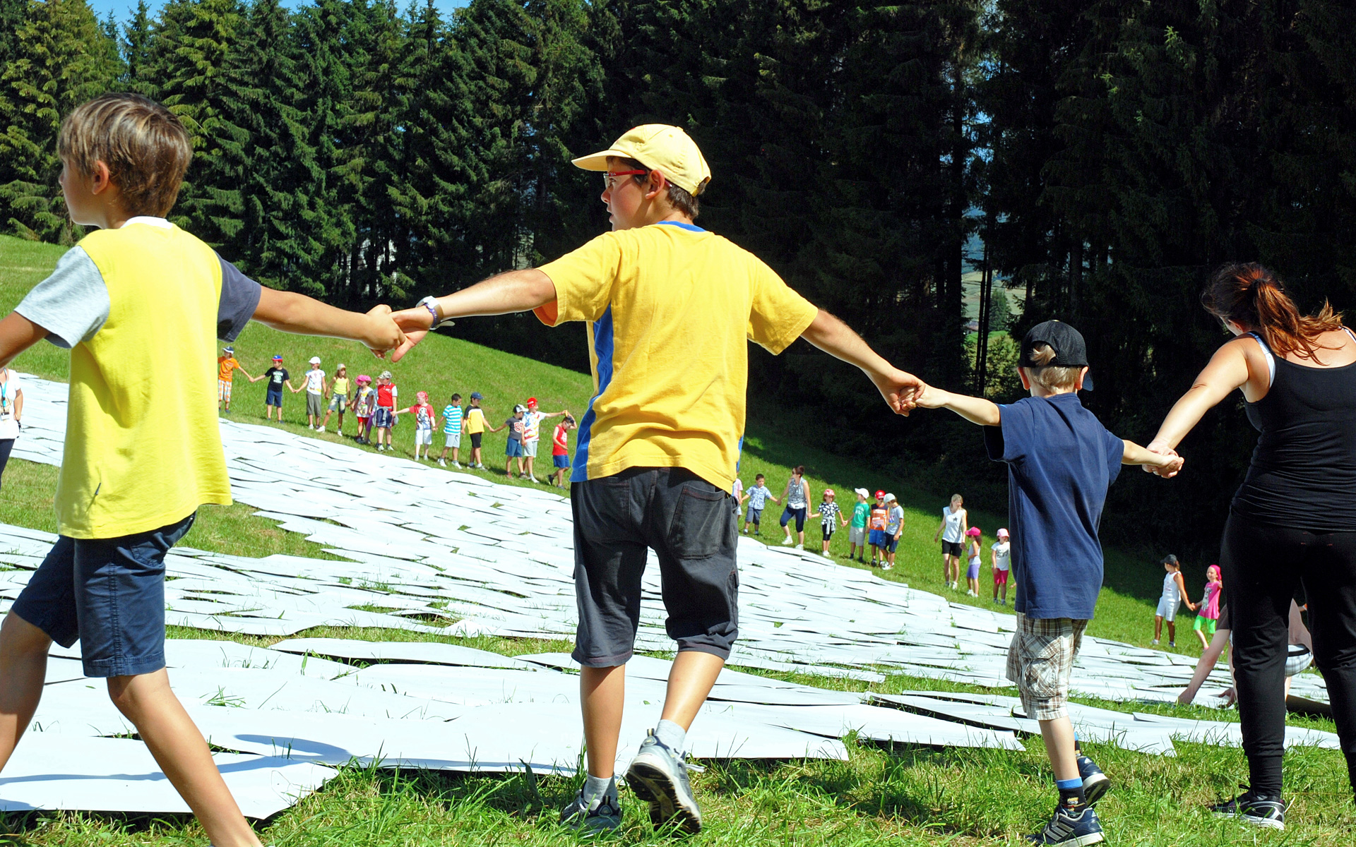 Children circle the 1:1 scale model of the 39 metre primary mirror of the European Extremely Large Telescope that they have constructed. The game was organised and played at the Osservatorio Astrofisico di Asiago — Asiago Astrophysical Observatory — part of the University of Padua near Asiago, Italy.