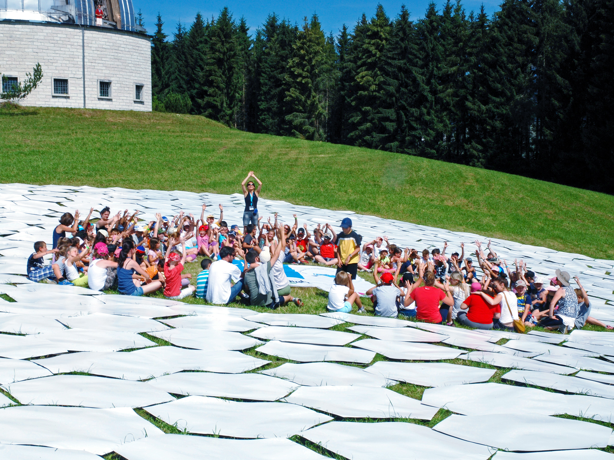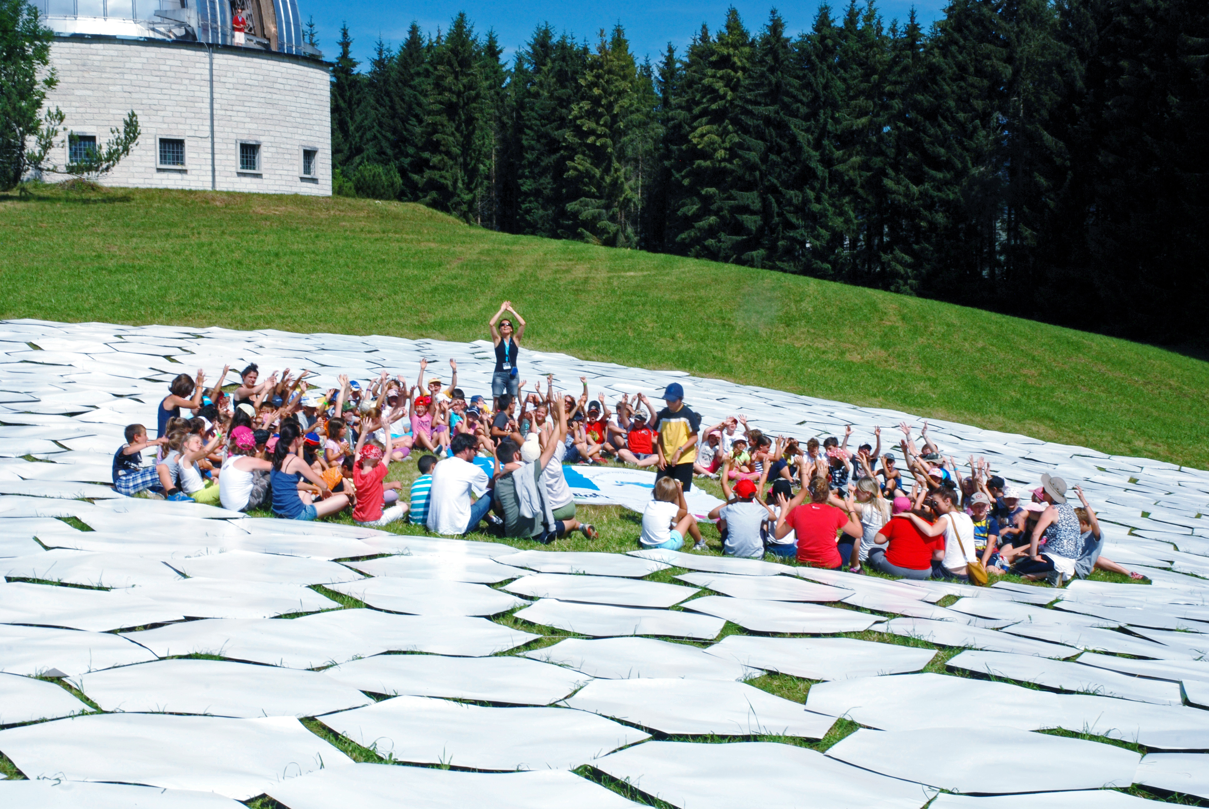 This image shows the final result of a game to produce a 1:1 scale model of the 39 metre primary mirror of the European Extremely Large Telescope. The game was organised and played at the Osservatorio Astrofisico di Asiago — Asiago Astrophysical Observatory — part of the University of Padua near Asiago, Italy.