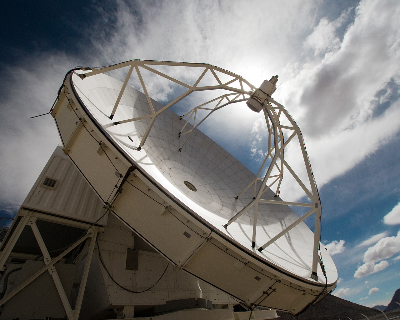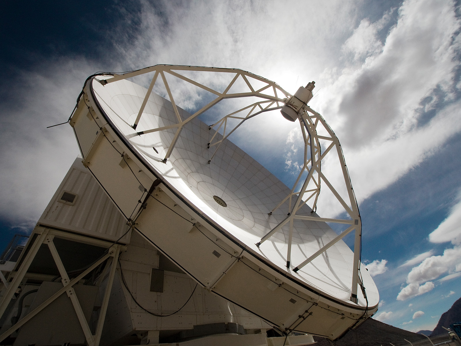 View of the Atacama Pathfinder Experiment (APEX) antenna on the Chajnantor plain of the Chilean Andes, 5000 m above sea level. APEX is a collaboration between the Max Planck Institut für Radioastronomie, Onsala Space Observatory (OSO) and ESO. The telescope was manufactured by VERTEX Antennentechnik in Duisburg, Germany. Astronomers observing with APEX can see cold dust and gas in both the Milky Way and in distant galaxies.