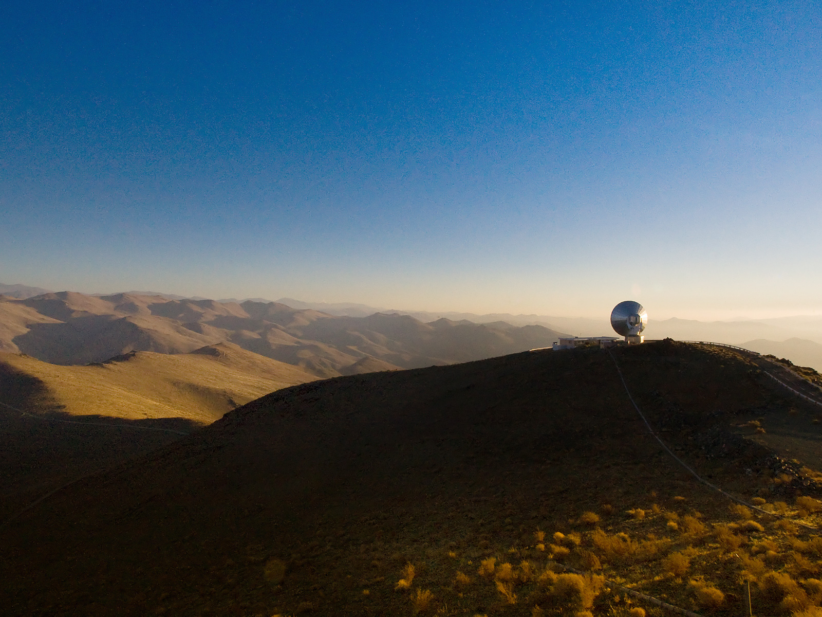 The 15-metre Swedish-ESO Submillimeter Telescope (SEST) at ESO's La Silla observing site in the southern part of the Atacama desert of Chile. Designed to observe at sub-millimetric wavelengths, SEST was built in 1987 on La Silla and decommissioned in 2003. 2,400 metres above sea level, La Silla was ESO's first observing site. Currently La Silla hosts ESO's 3.6-m telescope, the New Technology Telescope (NTT), and the 2.2-m Max-Planck-ESO telescope.