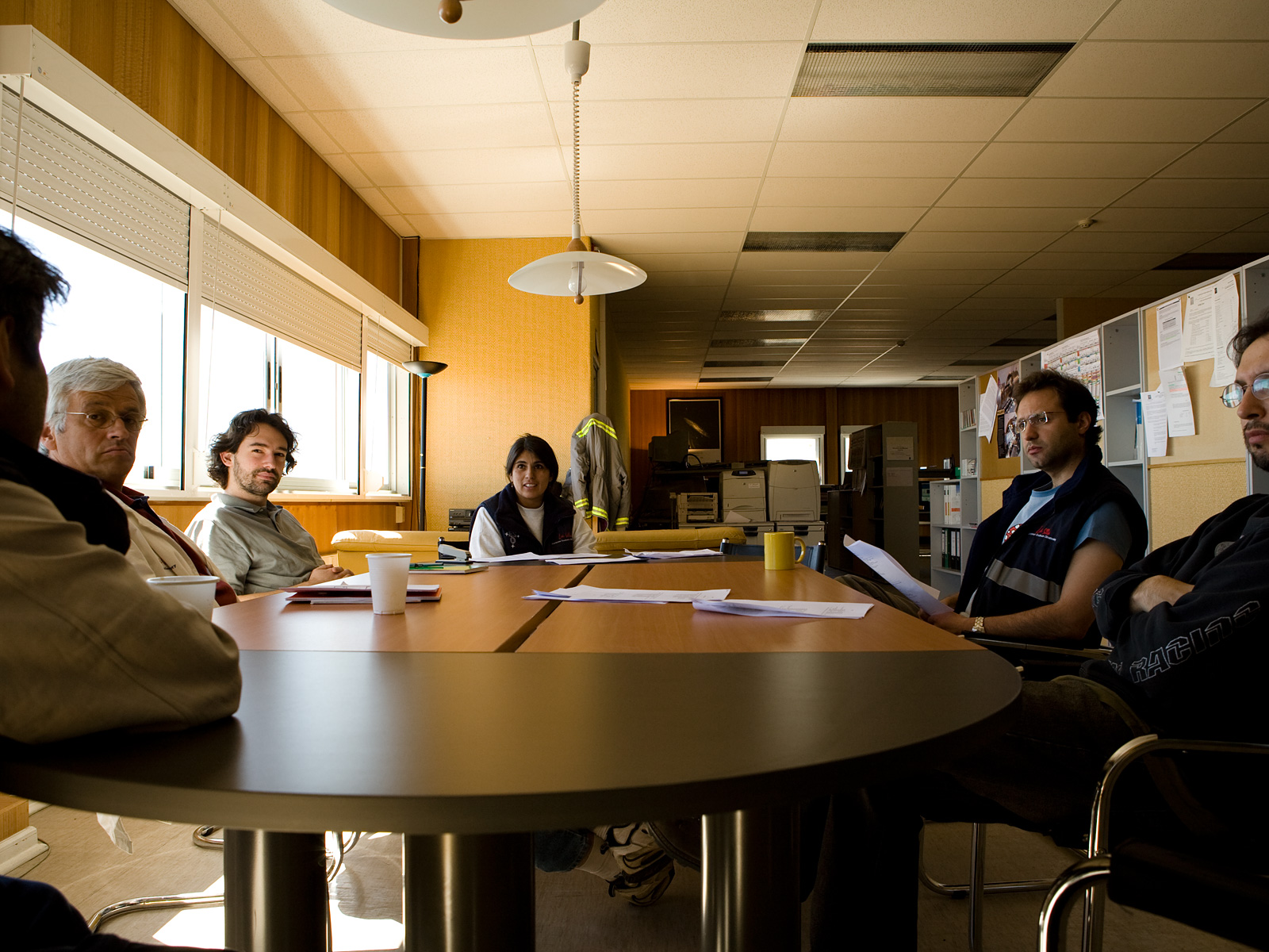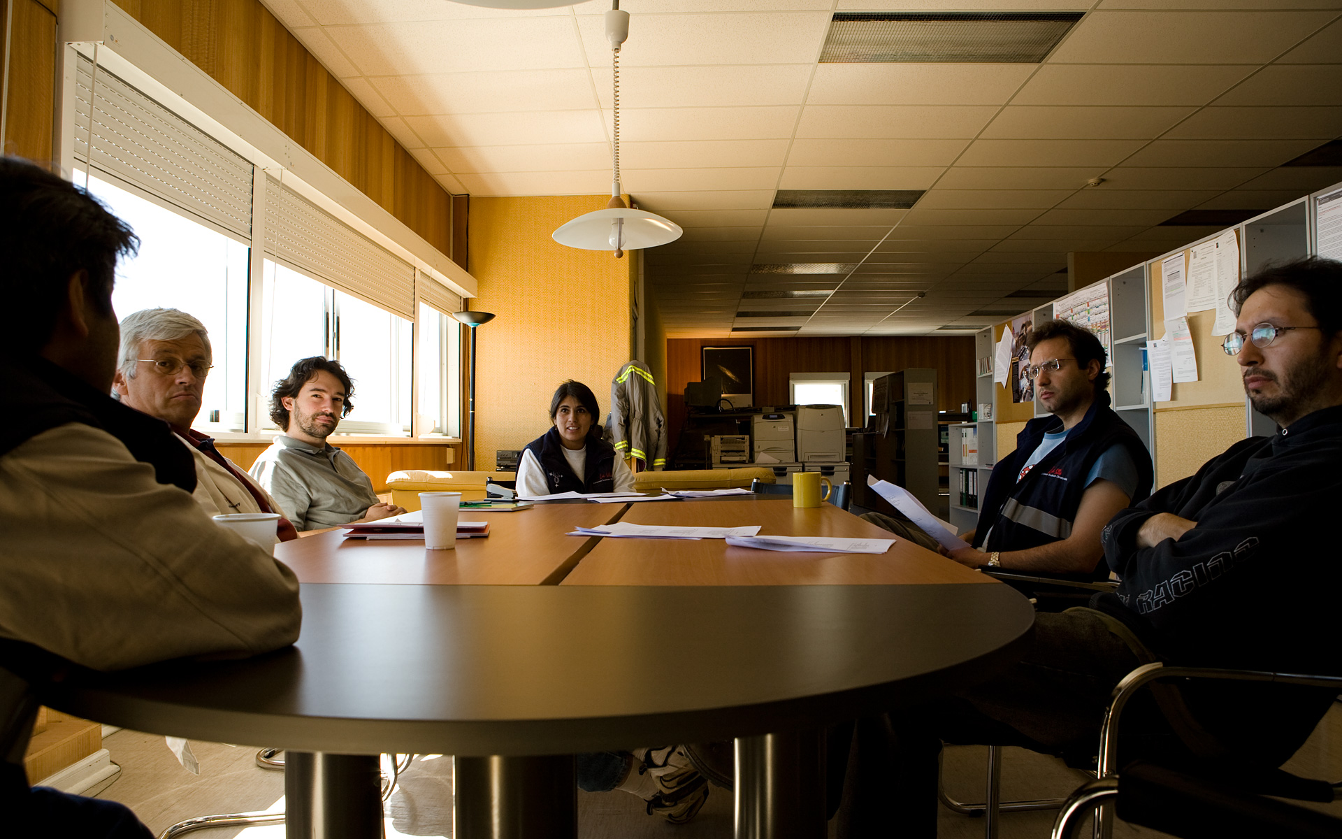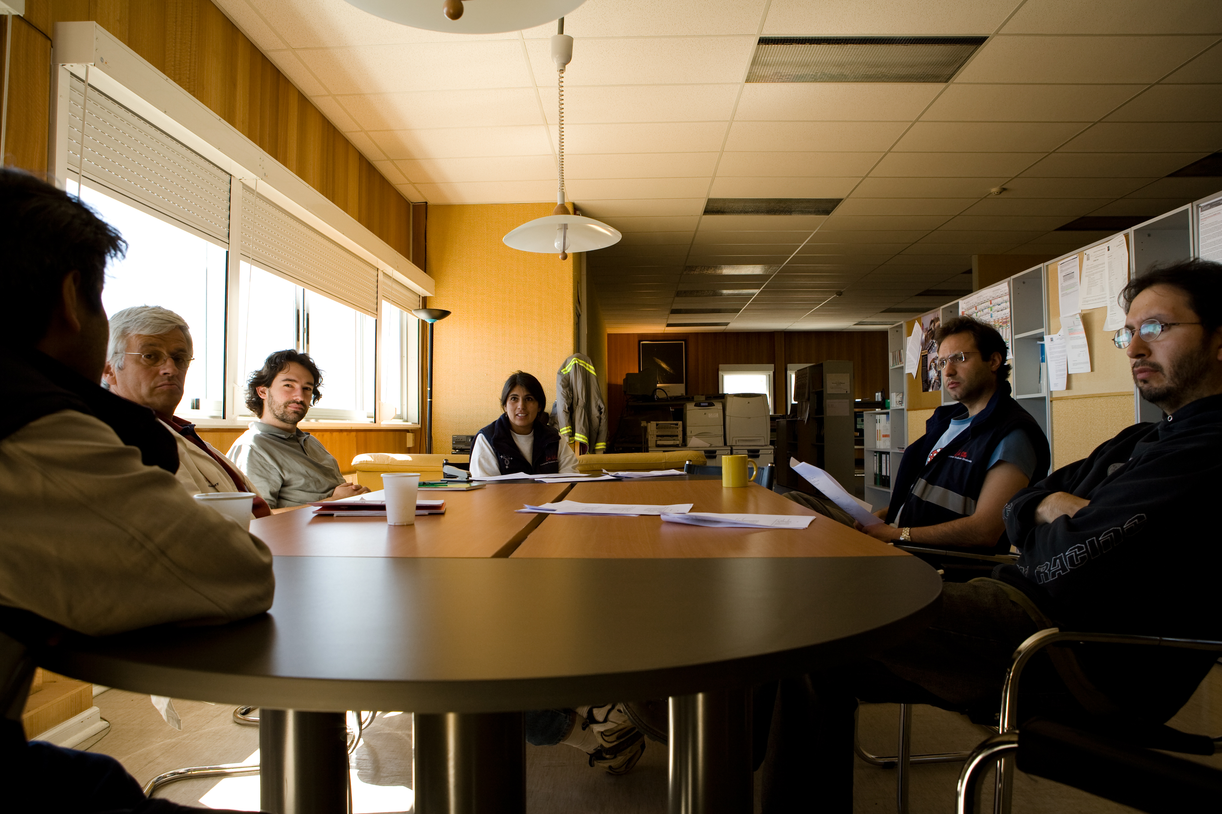Coordination meeting taking place in the main control room of the RITZ on La Silla, from which all telescopes are controlled.