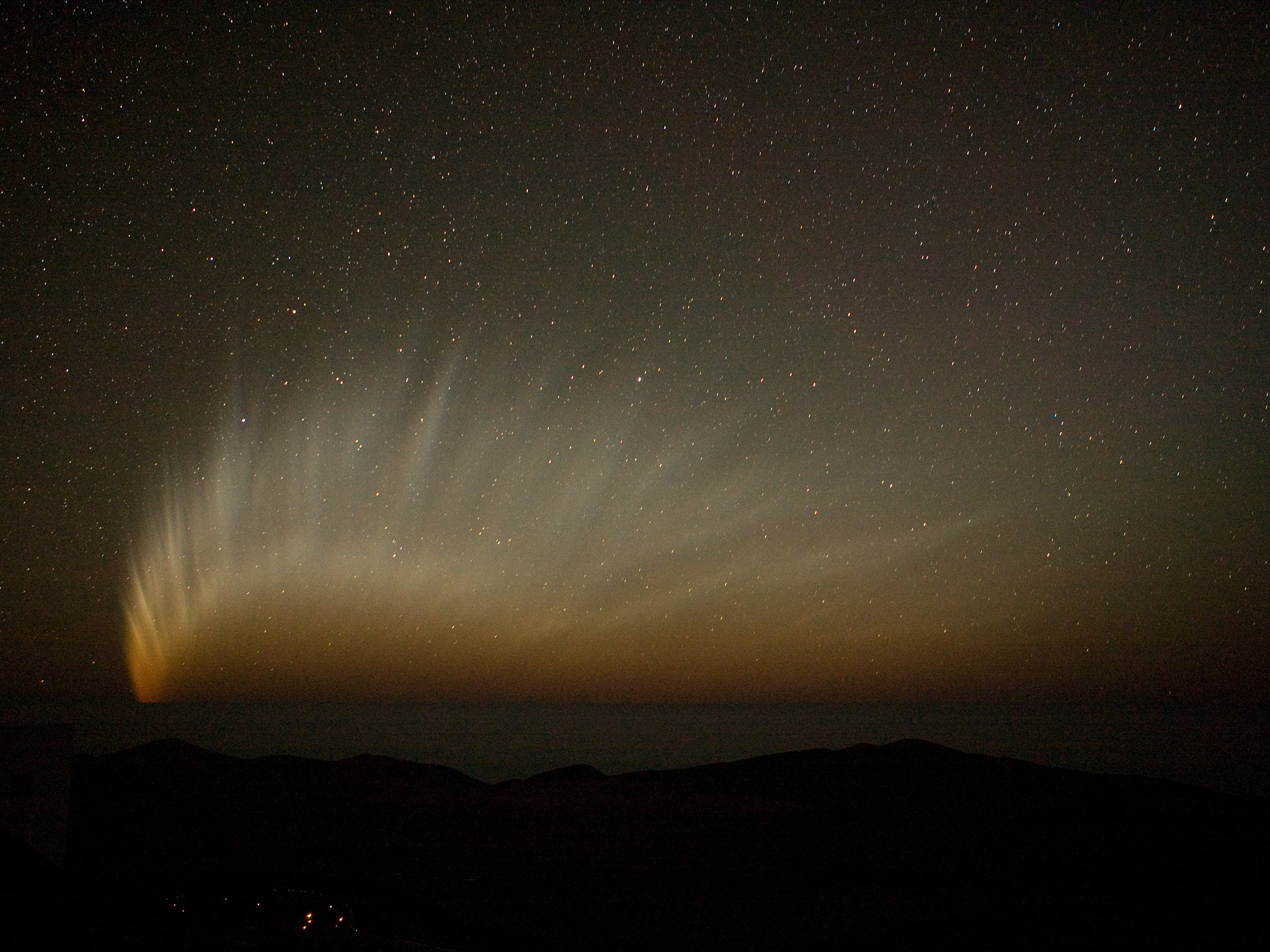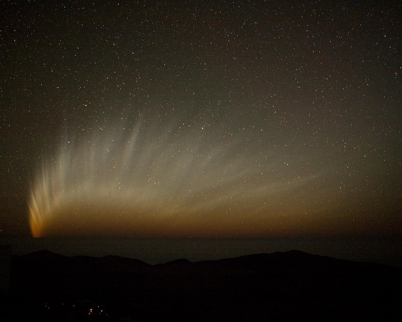 The tail of comet McNaught over the Pacific seen from Paranal in January 2007.