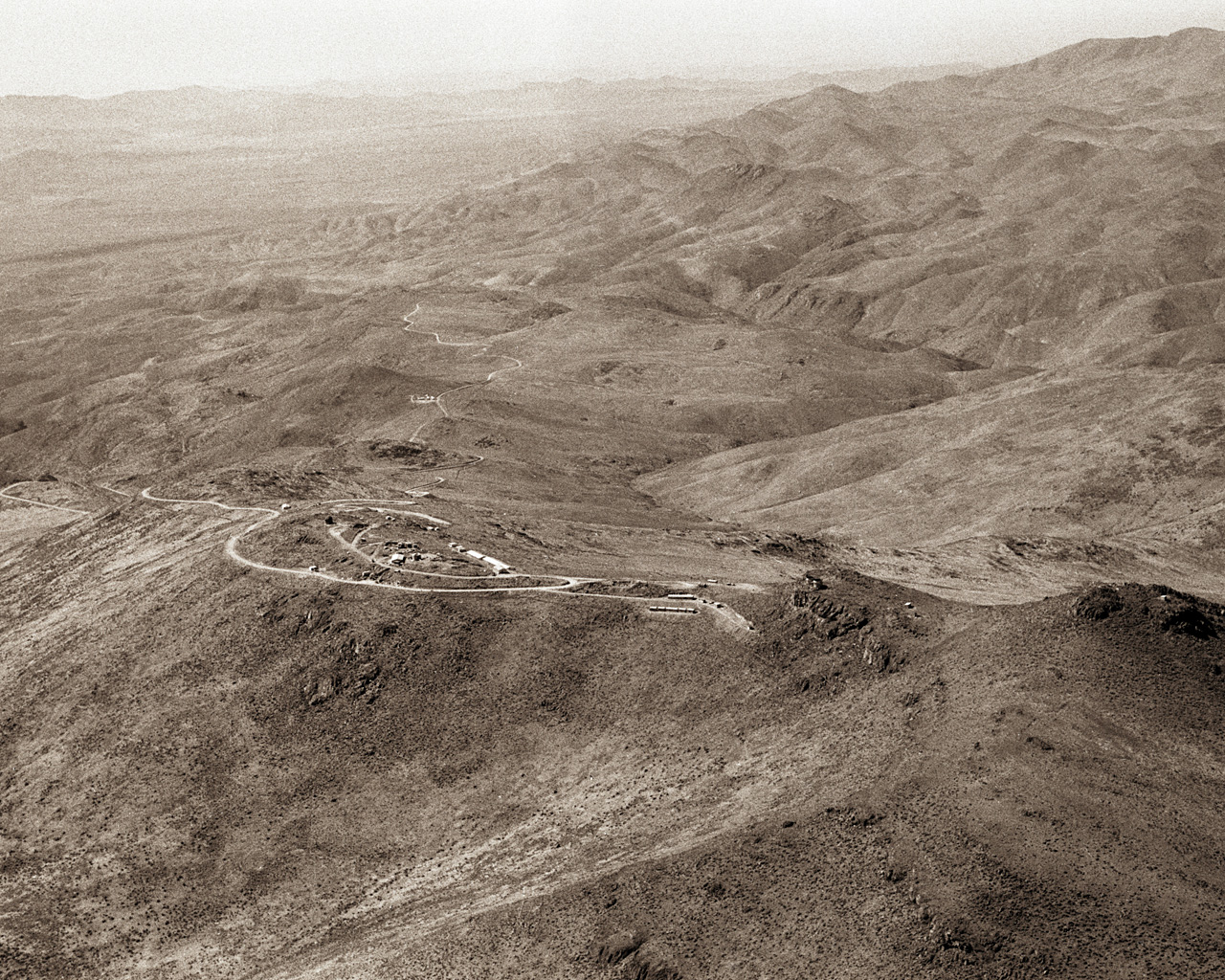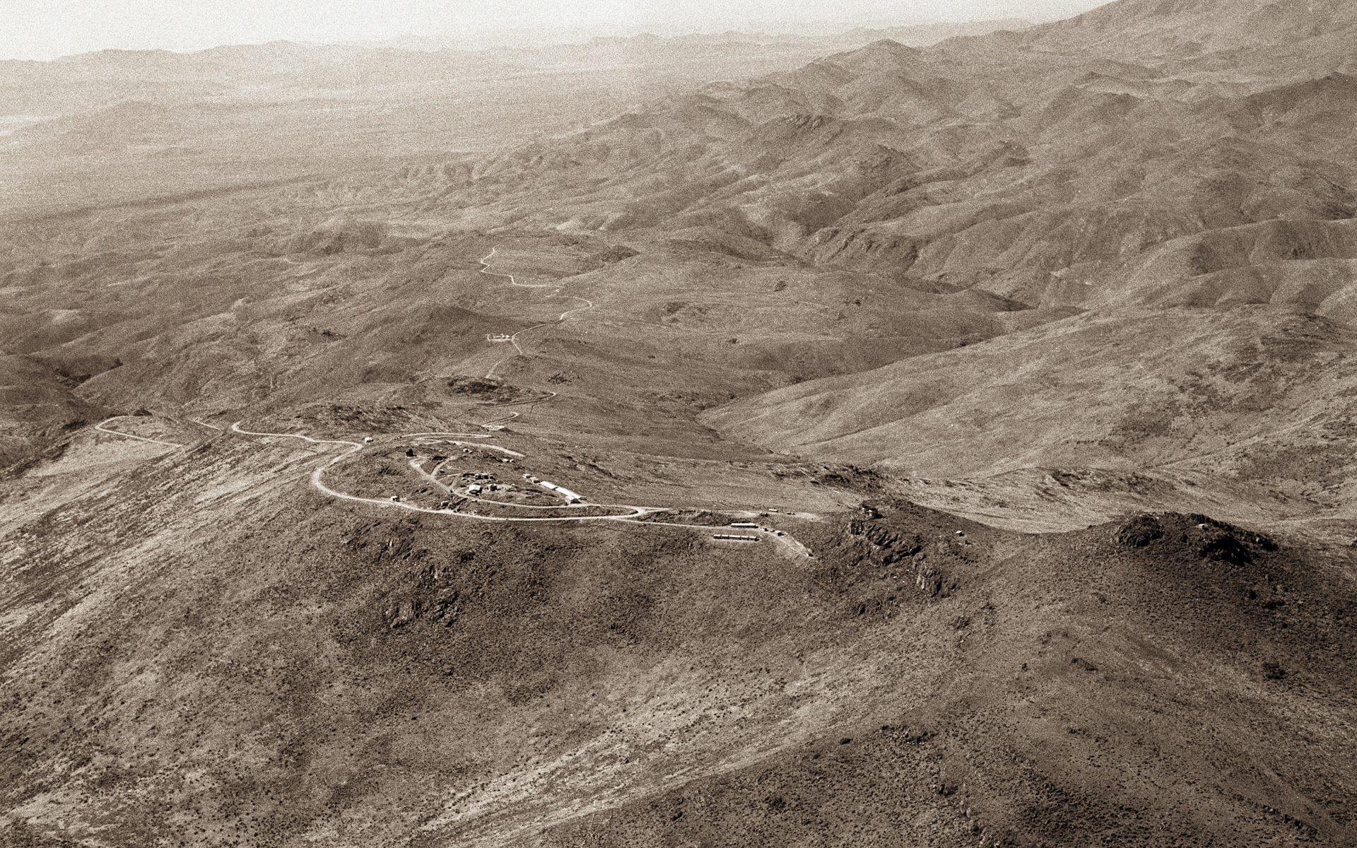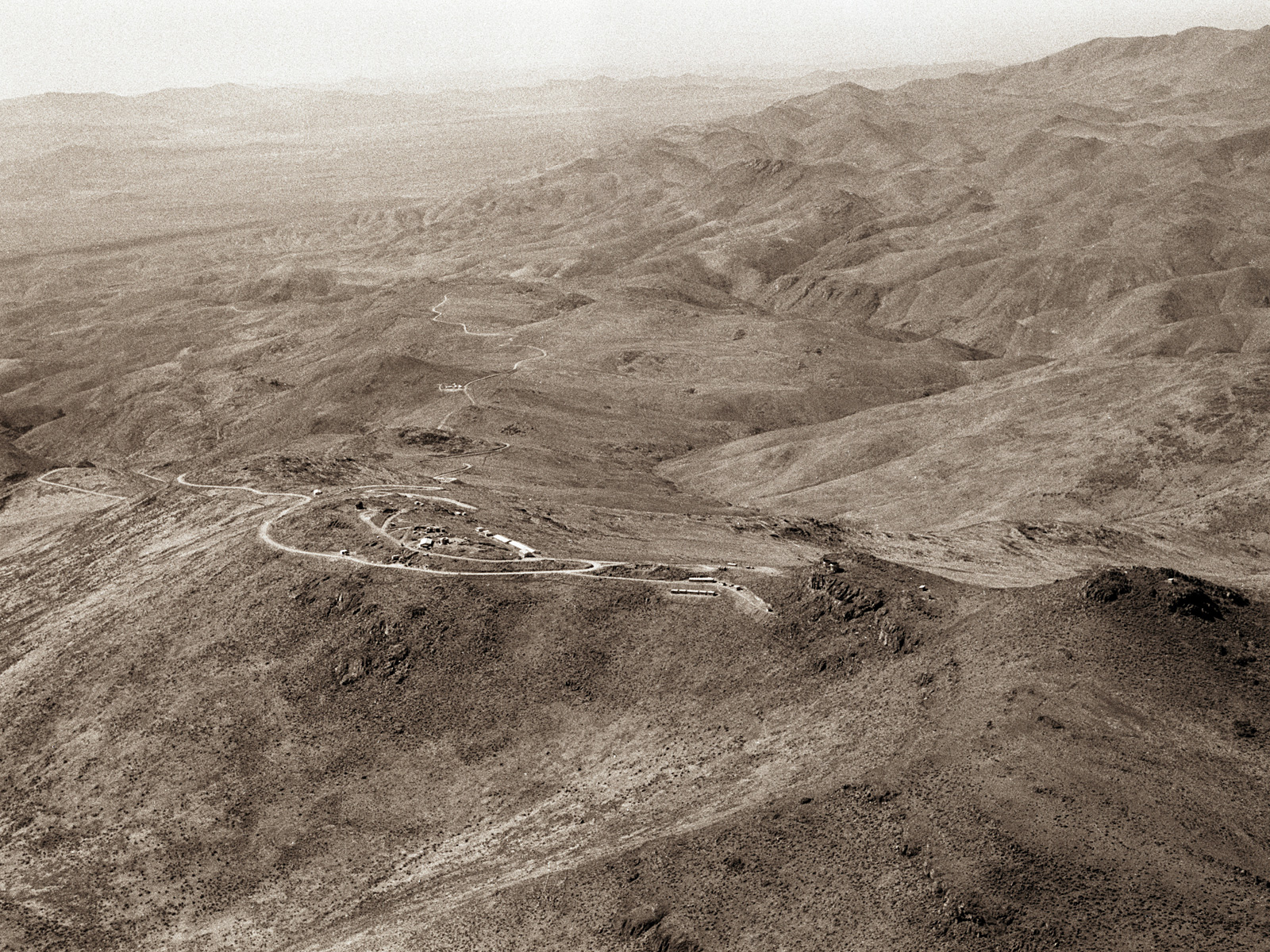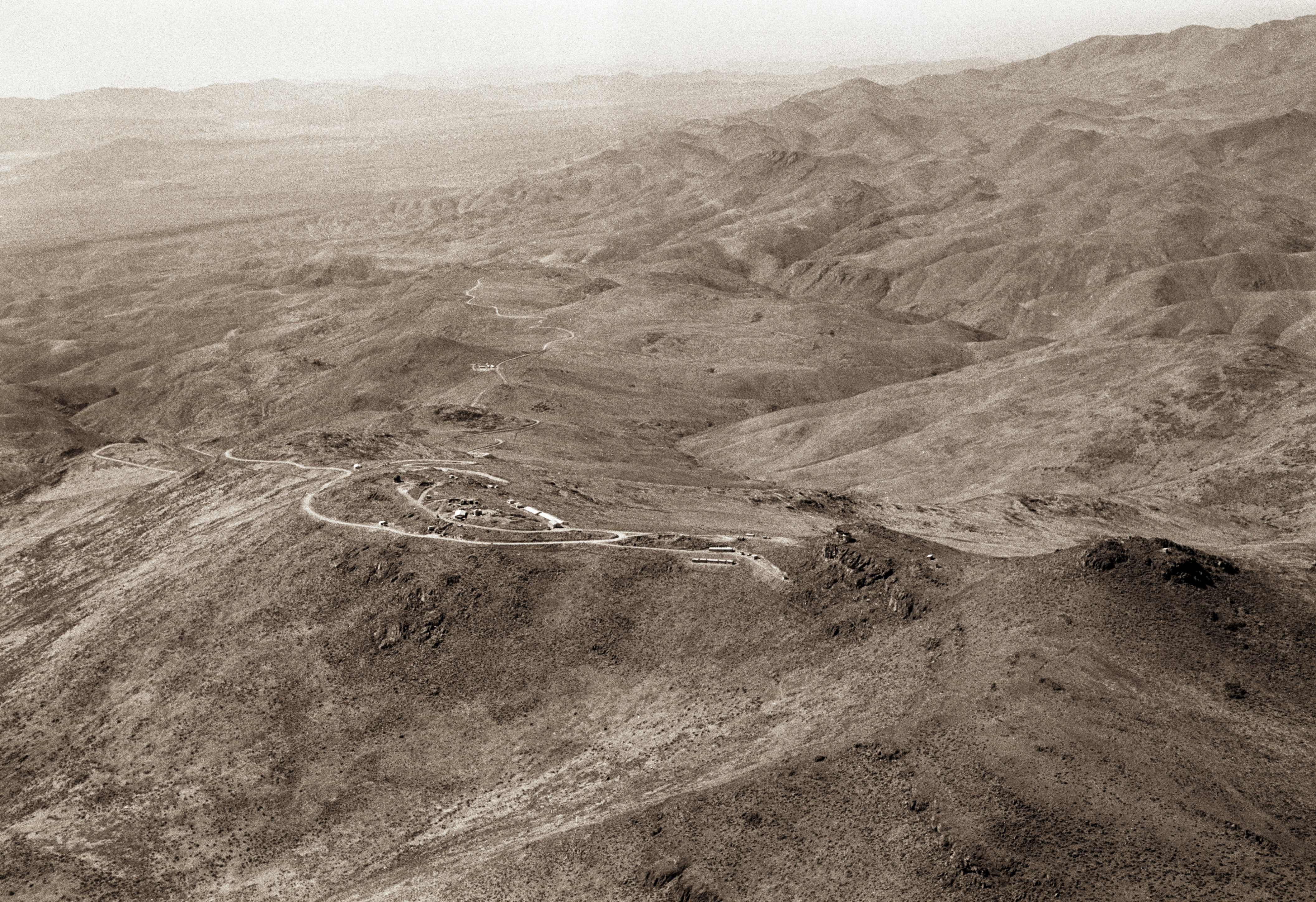 East view of the La Silla mountain, located in northern Chile. It was selected in 1964 as the site of ESO''s observatory. Construction started immediately. In October 1966, when this aerial picture was taken, a camp had been erected near the summit. After three more year of work, the Observatory was inaugurated in 1969. Since then, about 20 telescopes ranging from 25cm to 3.6m have been operated on La Silla.