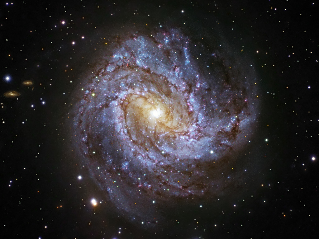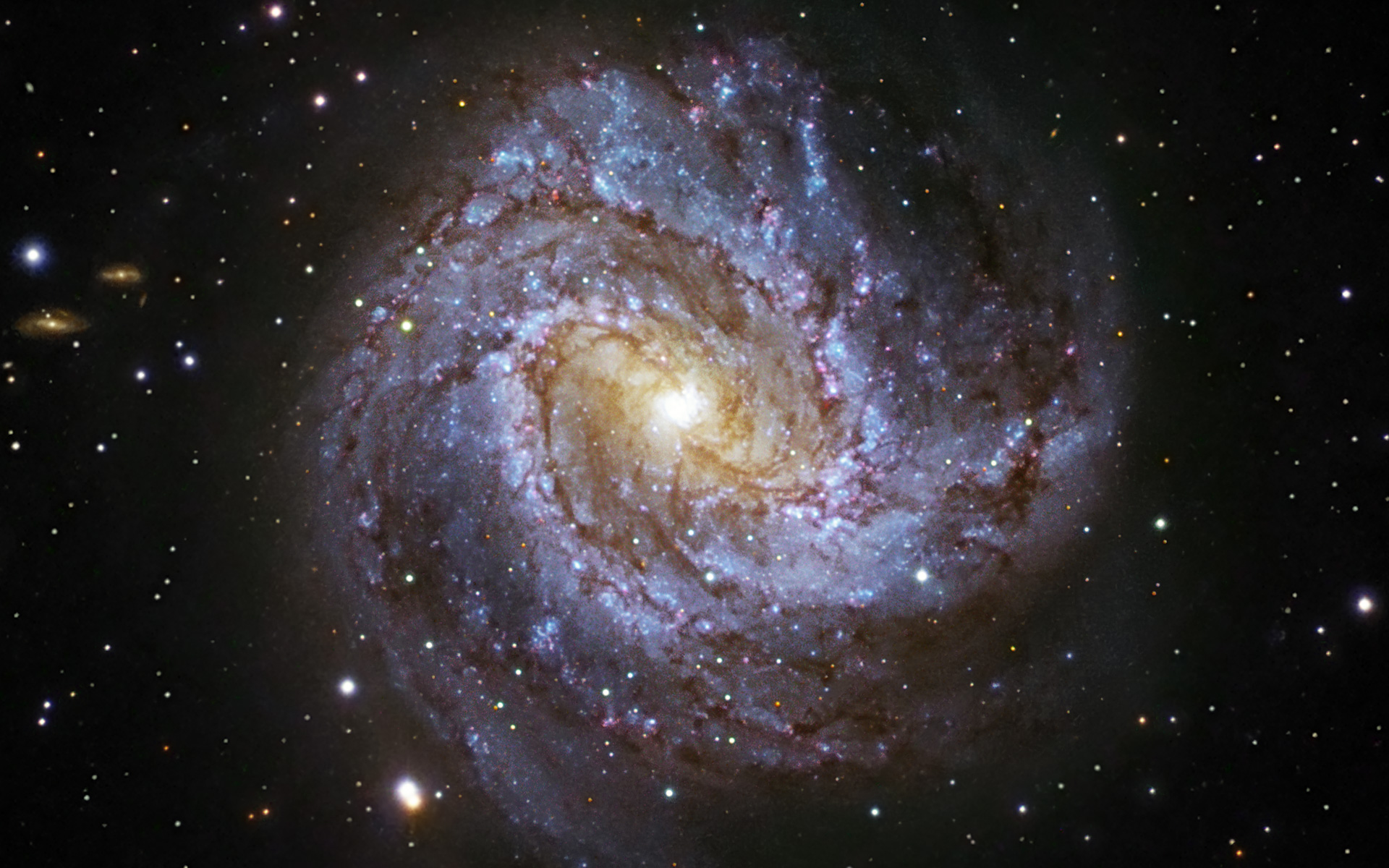 Located about 15 million light-years away towards the Hydra (the sea serpent) constellation, Messier 83 is a nearby face-on barred spiral with a classic grand design form. It is the main member of a small galactic group including NGC 5253 and about 9 dwarf galaxies. Messier 83 stretches over 40,000 light-years, making it roughly 2.5 times smaller than our own Milky Way. However, in some respects, Messier 83 is quite similar to our own galaxy. Both the Milky Way and Messier 83 possess a bar across their galactic nucleus, the dense spherical conglomeration of stars seen at the centre of the galaxies.