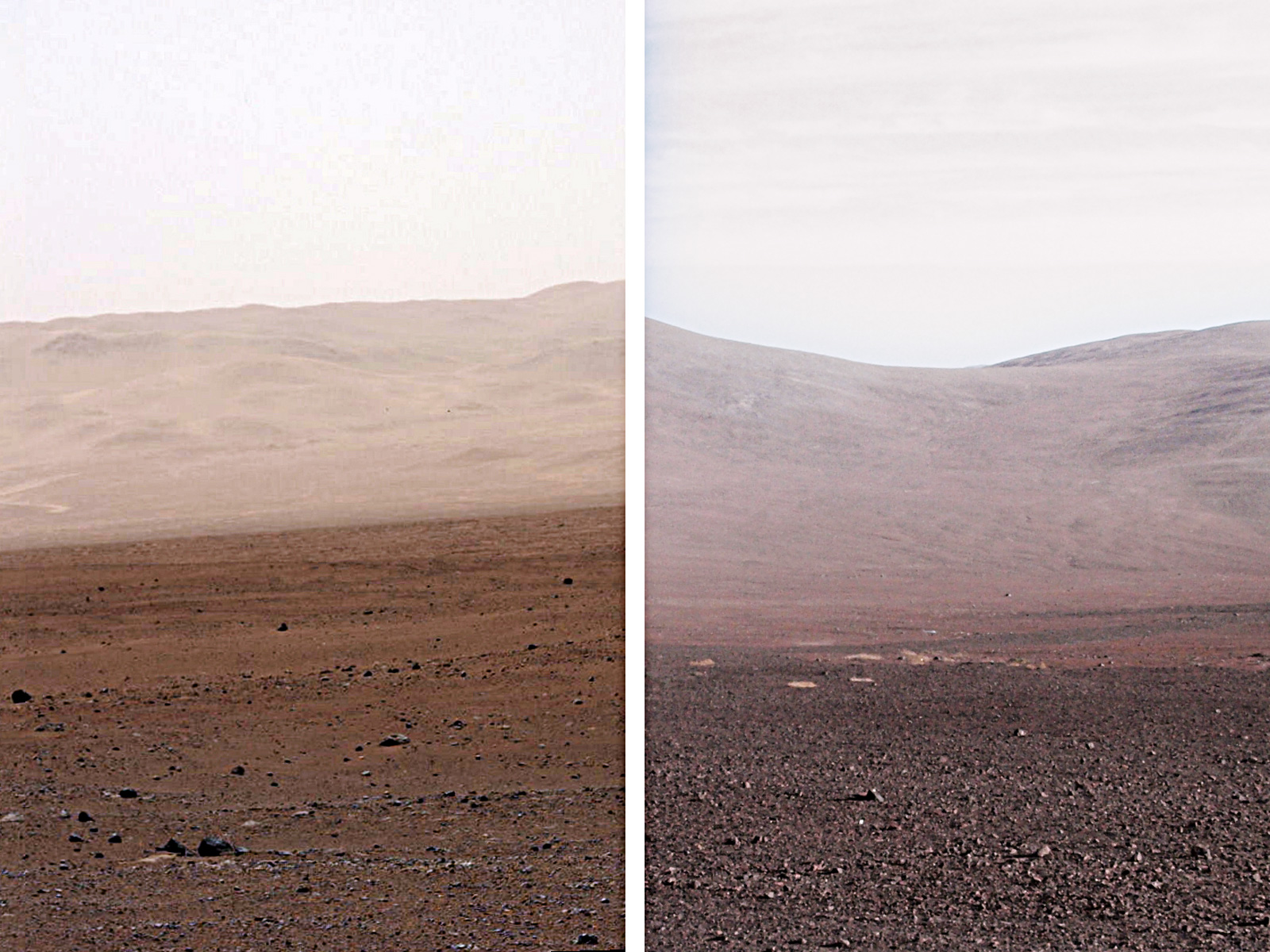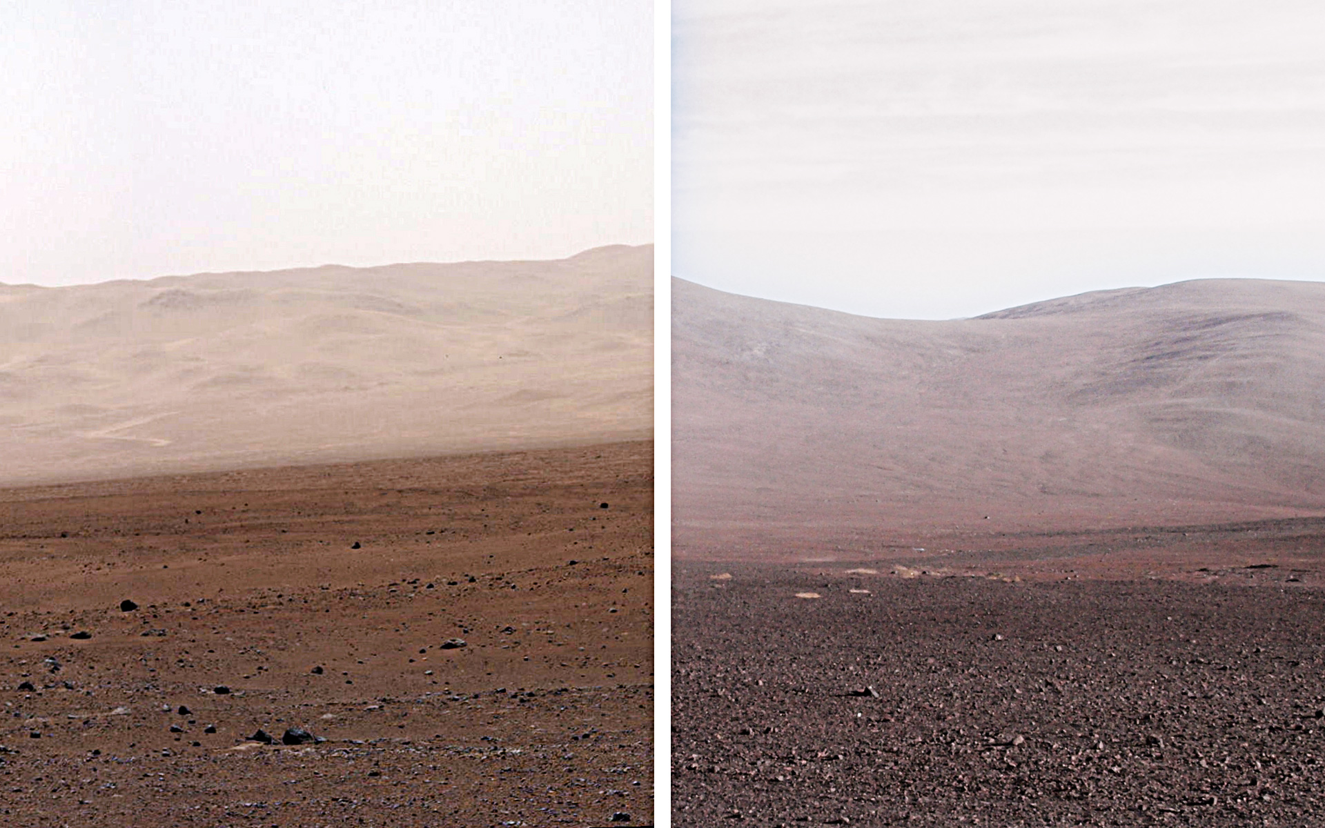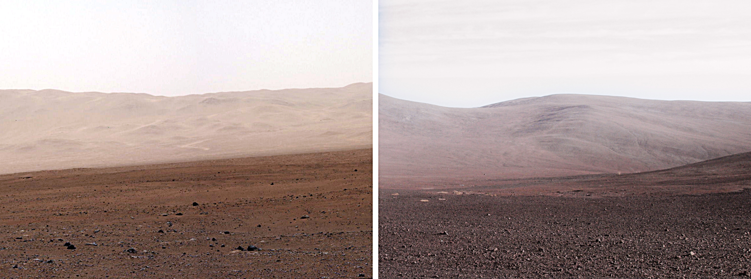 On the left of this image is the landscape of Mars and to the right is Cerro Paranal in Chile, home to ESO's Very Large Telescope.