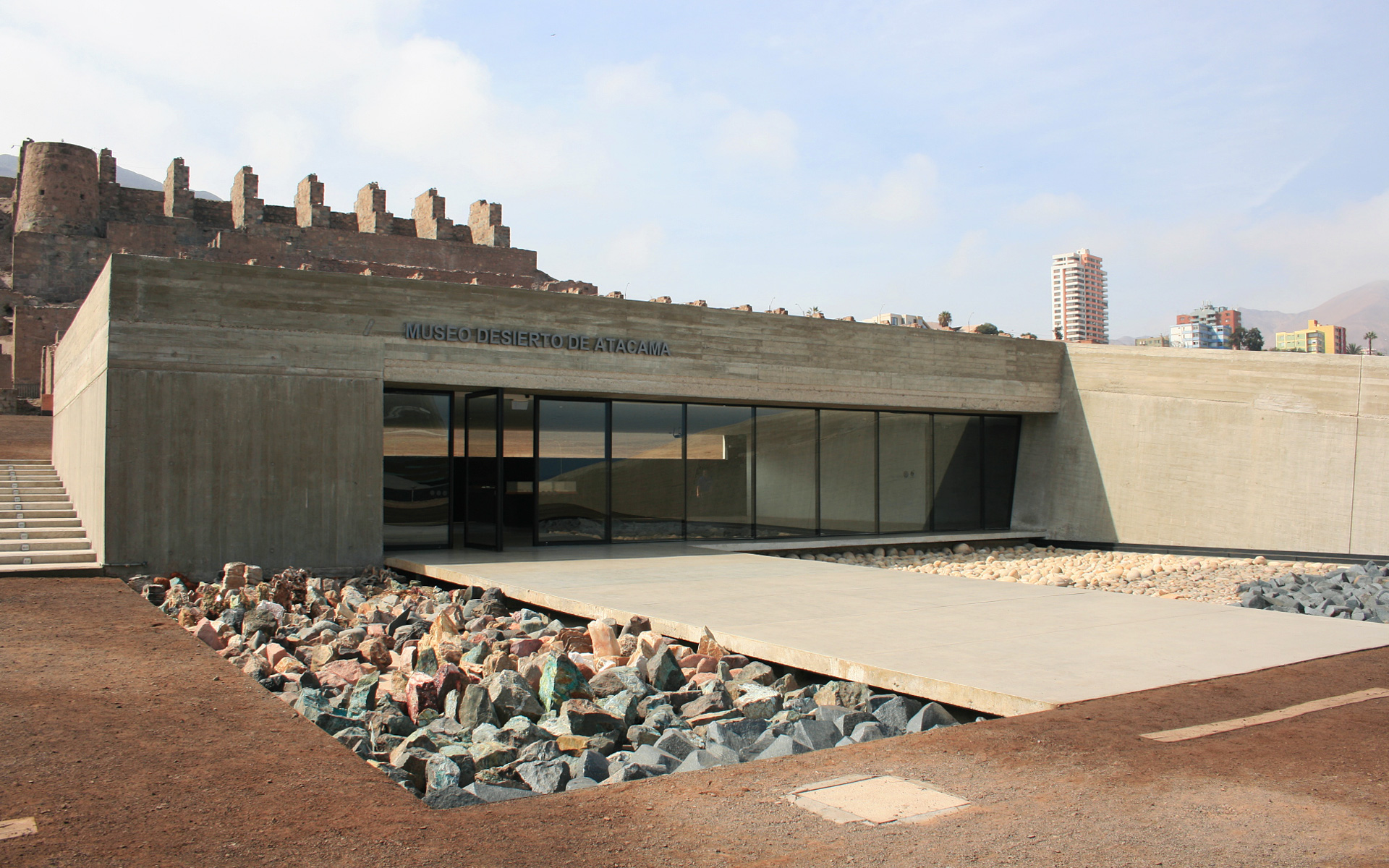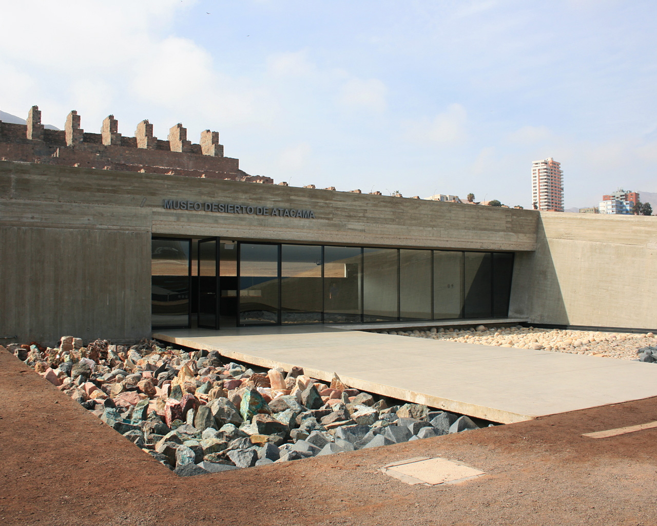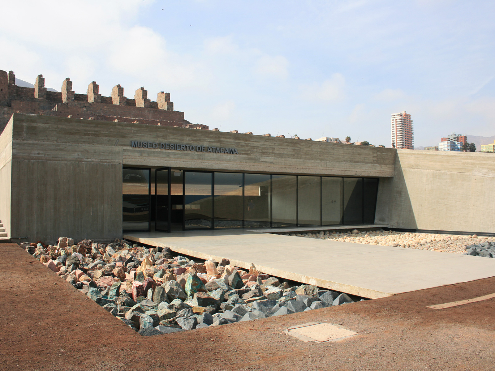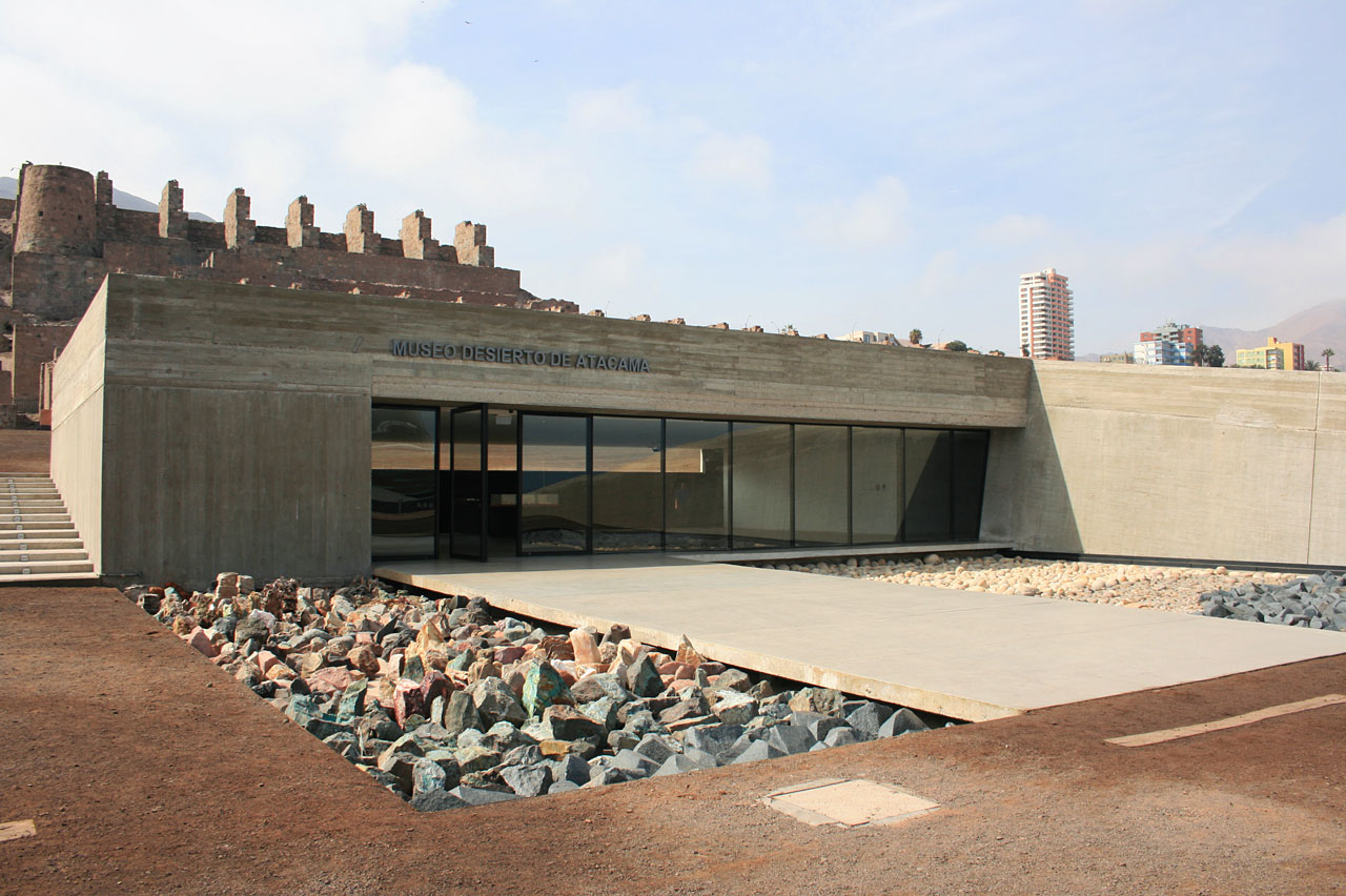 The main entrance of the Museum of the Atacama Desert (MDA), in Antofagasta (Chile’s Region II). The MDA, officially inaugurated on 25 May 2010, is built on the levelled area in front of the Huanchaca Ruins, the remains of a silver foundry from the beginning of the 19th century. This historical monument, visible in the background, represents a significant piece in the history of Antofagasta and the metallurgic industry in Chile. The MDA includes five main permanent exhibitions and contains unique collections which present the whole history of the Atacama Desert, from its geological formation up to the present day, in which it has become a privileged site for ground-based astronomy. The permanent exhibition “A Window to the Universe” was designed and donated by ESO as a contribution to the Region of Antofagasta.