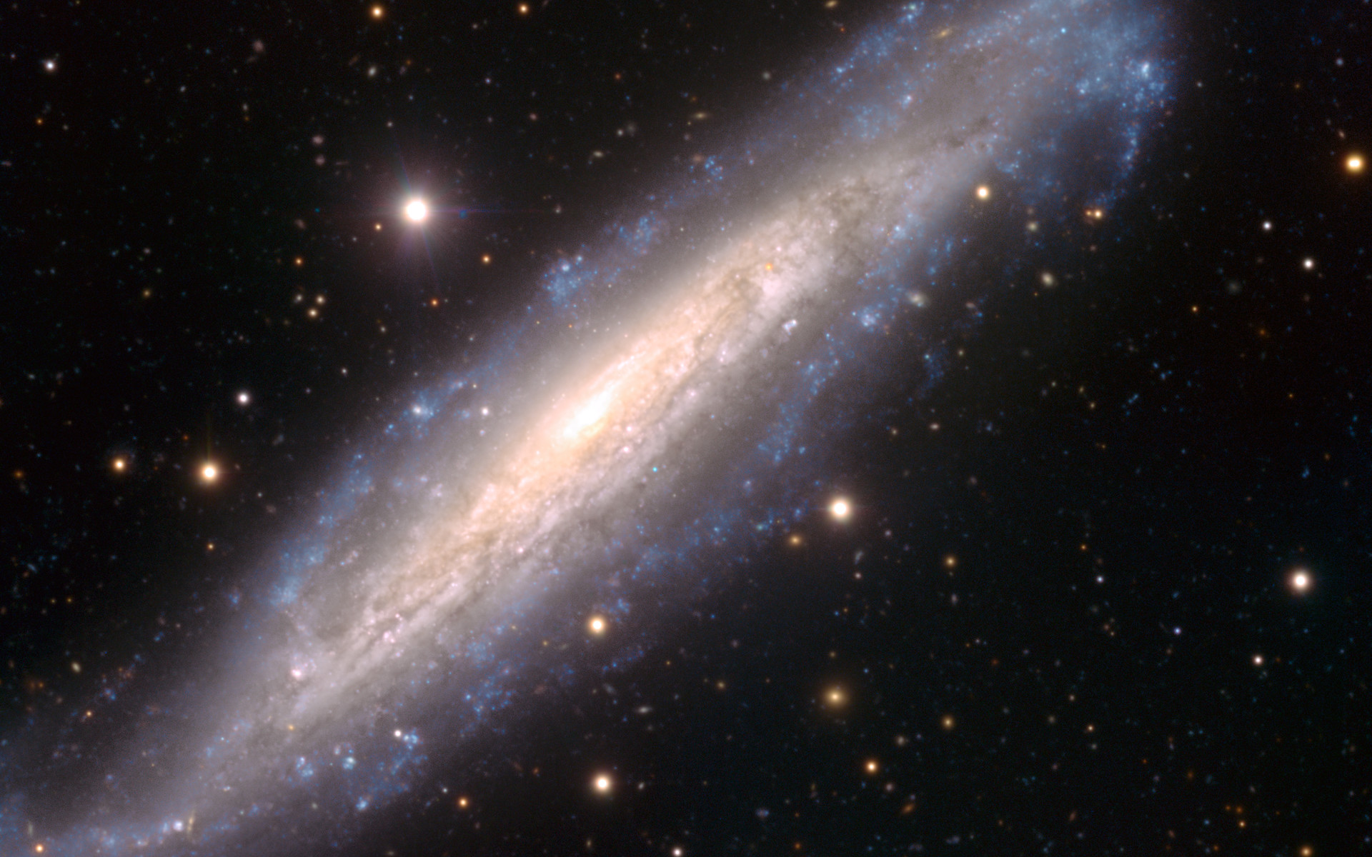 Visible as a red dot inside the disc, in the upper right part of the image, is the supernova observed in 2003 (SN 2003hn), whereas another one, detected in 2001 (SN 2001el), can be noticed as a tiny blue dot in the central part of the image, just below the galaxy’s core. If captured at the peak of the explosion, a supernova might be as bright as the whole galaxy that hosts it.