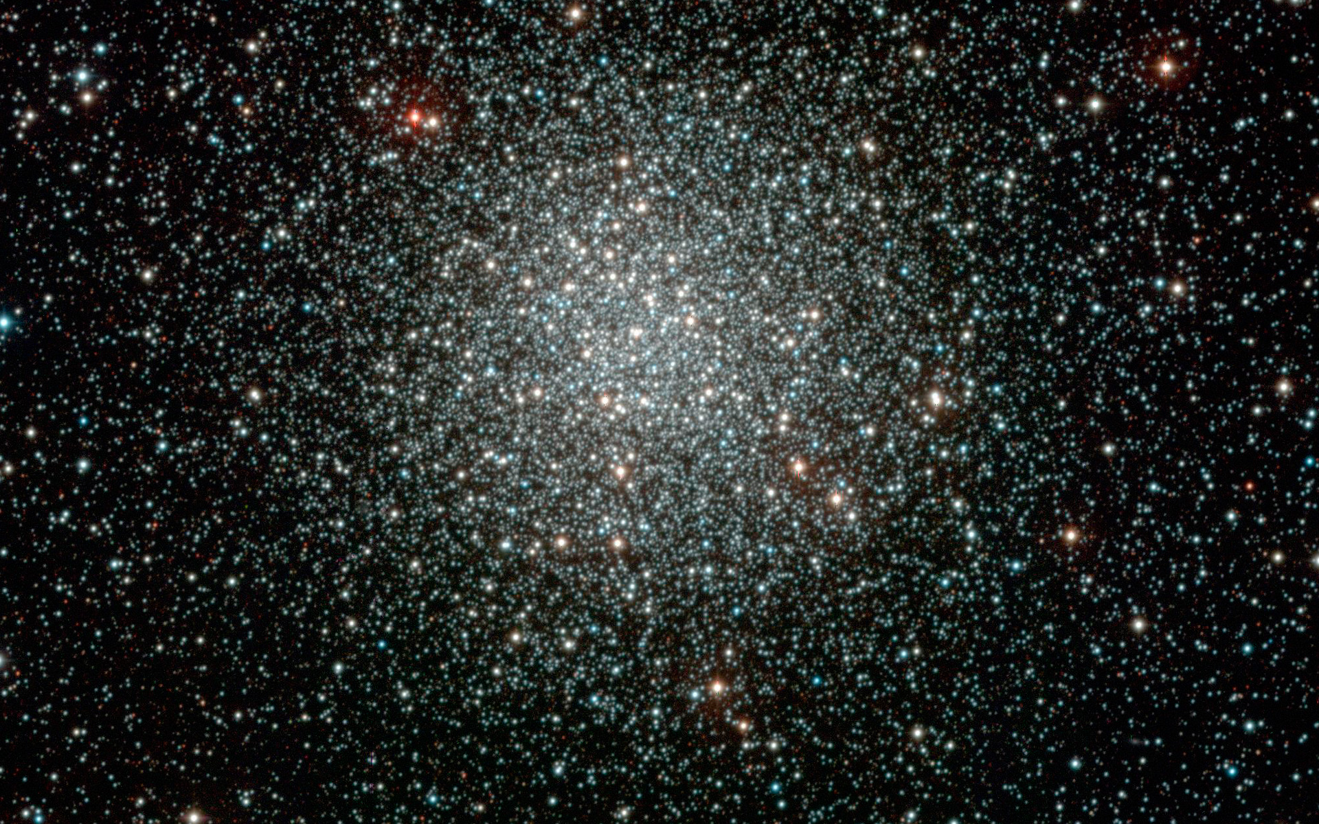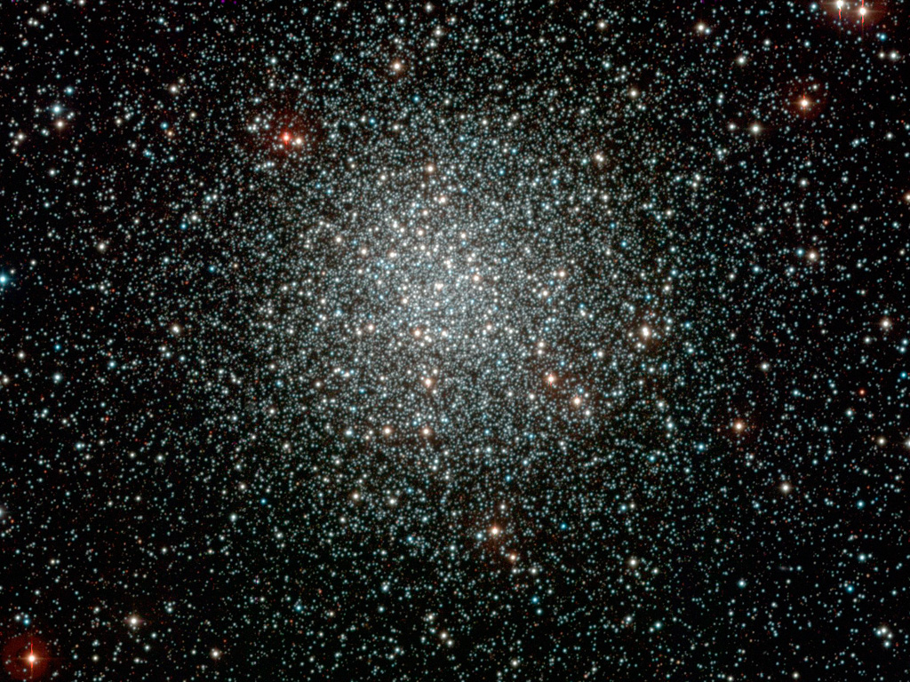 Colour-composite image of the globular cluster NGC 3201, obtained with the WFI instrument on the ESO/MPG 2.2-m telescope at La Silla. Globular clusters are large aggregates of stars, that can contain up to millions of stars. They are among the oldest objects observed in the Universe and were presumably formed at about the same time as the Milky Way Galaxy, in the early phase after the Big Bang. This particular globular cluster is located about 16 000 light-years away towards the Southern Vela constellation. The data were obtained as part of the ESO Imaging Survey (EIS), a public survey being carried out by ESO and member states, in preparation for the VLT First Light.