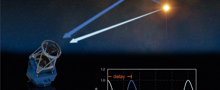 The determination of the distance to RS Pup, following the method of the American astronomer Robert Havlen, is based on the measurement of the phase difference between the variation of the star and the variation of isolated nebular features. Because the luminosity of the star changes in a very distinctive pattern, the presence of the nebula allows the astronomers to see light echoes and use them to measure the distance of the star. The light that travelled from the star to a dust grain and then to the telescope arrives a bit later than the light that comes directly from the star to the telescope. As a consequence, if we measure the brightness of a particular, isolated dust blob in the nebula, we will obtain a brightness curve that has the same shape as the variation of the Cepheid, but shifted in time. This delay is called a 'light echo', by analogy with the more traditional echo, the reflection of sound by, for example, the bottom of a well.