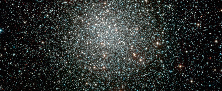 Colour-composite image of the globular cluster NGC 3201, obtained with the WFI instrument on the ESO/MPG 2.2-m telescope at La Silla. Globular clusters are large aggregates of stars, that can contain up to millions of stars. They are among the oldest objects observed in the Universe and were presumably formed at about the same time as the Milky Way Galaxy, in the early phase after the Big Bang. This particular globular cluster is located about 16 000 light-years away towards the Southern Vela constellation. The data were obtained as part of the ESO Imaging Survey (EIS), a public survey being carried out by ESO and member states, in preparation for the VLT First Light.