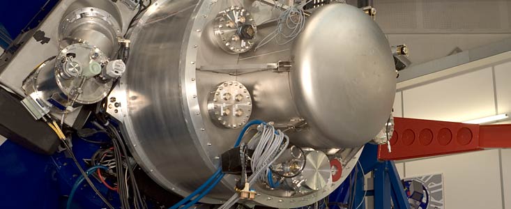 The image shows X-shooter, the first of the second generation VLT instruments, under test in the integration lab at ESO, Garching. The instrument has been built by a Consortium including ESO and institutes from Denmark, Italy, The Netherlands and France, and will start operation at the telescope in 2009.