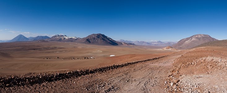 The magnificent 6739-metre volcano Llullaillaco stands proudly in the background of this photograph. Although it looks relatively close on the horizon, it is actually an incredible 190 kilometres away, on the border with Argentina. That Llullaillaco can be seen so clearly is evidence of the region’s unparallelled atmospheric conditions. The clear air is one of the many factors that make this such a wonderful location for astronomical observatories. It is from this excellent vantage point that ESO astronomers study objects that are not just hundreds of kilometres in the distance, but billions of light-years away.