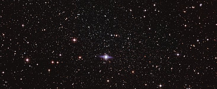 This galaxy is located in the constellation of Hydra (The Sea Snake) and can be seen with a moderate-sized telescope. This image, taken using B, V, and I filters with the FORS1 instrument on the powerful VLT, shows striking detail in this odd object and also reveals a multitude of background galaxies. A number of bright foreground stars that belong to our own Milky Way are also visible.