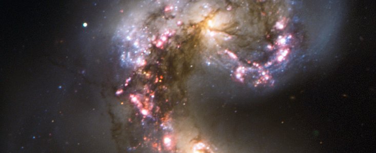 The resolution of the existing 2.2-metre MPG/ESO telescope observations was combined (by using their “luminance” or brightness) with the colour information from Gendler and Hannahoe’s observations to produce a beautiful combination of data from amateur and professional telescopes. For example, the additional colour information brings out the faint blue nebulosity in the central region, which is not seen in the original ESO image, while the ESO data contribute their finer detail. The result is an image that is much more than the sum of its parts.