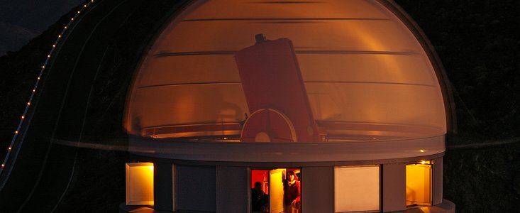 As night was falling over ESO’s La Silla Observatory in Chile on 20 December 2009, the sky was not yet dark enough for the telescopes to start observations. But conditions were perfect to perform a clever trick with the dome of the Swiss 1.2-metre Leonhard Euler Telescope: allowing us to peer inside with this photograph apparently taken through the dome.