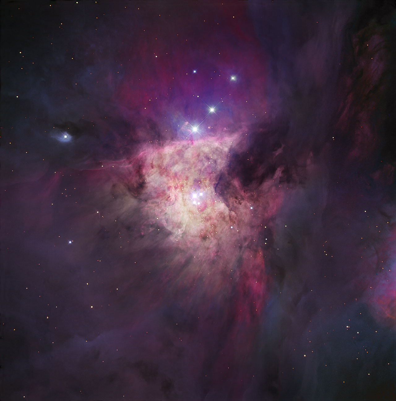 The central region of the Orion Nebula (M42, NGC 1976) as seen in the near-infrared by the High Acuity Wide field K-band Imager (HAWK-I) instrument at ESO's Very Large Telescope at Paranal.