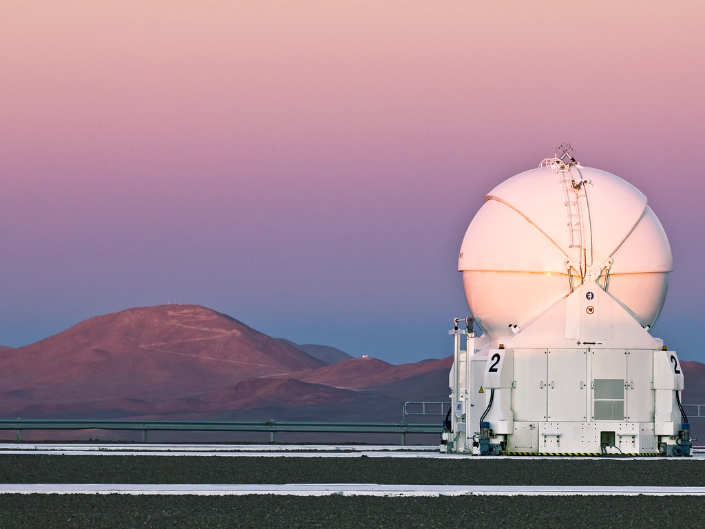 ESO Photo Ambassador Gianluca Lombardi was in the perfect position to capture a crisp dusk view of Auxiliary Telescope (AT) 2, on Cerro Paranal. Once the Sun sets, the cloudless skies above the Chilean desert will be filled with stars, and AT2 will begin its work. In the background on the left is Cerro Armazones, with a road zigzagging to its peak, home of the future European Extremely Large Telescope. Site-testing equipment can be seen on the peak. The lower peak to the right of Cerro Armazones is the site of smaller telescopes operated by the Instituto de Astronomía of the Universidad Católica del Norte.