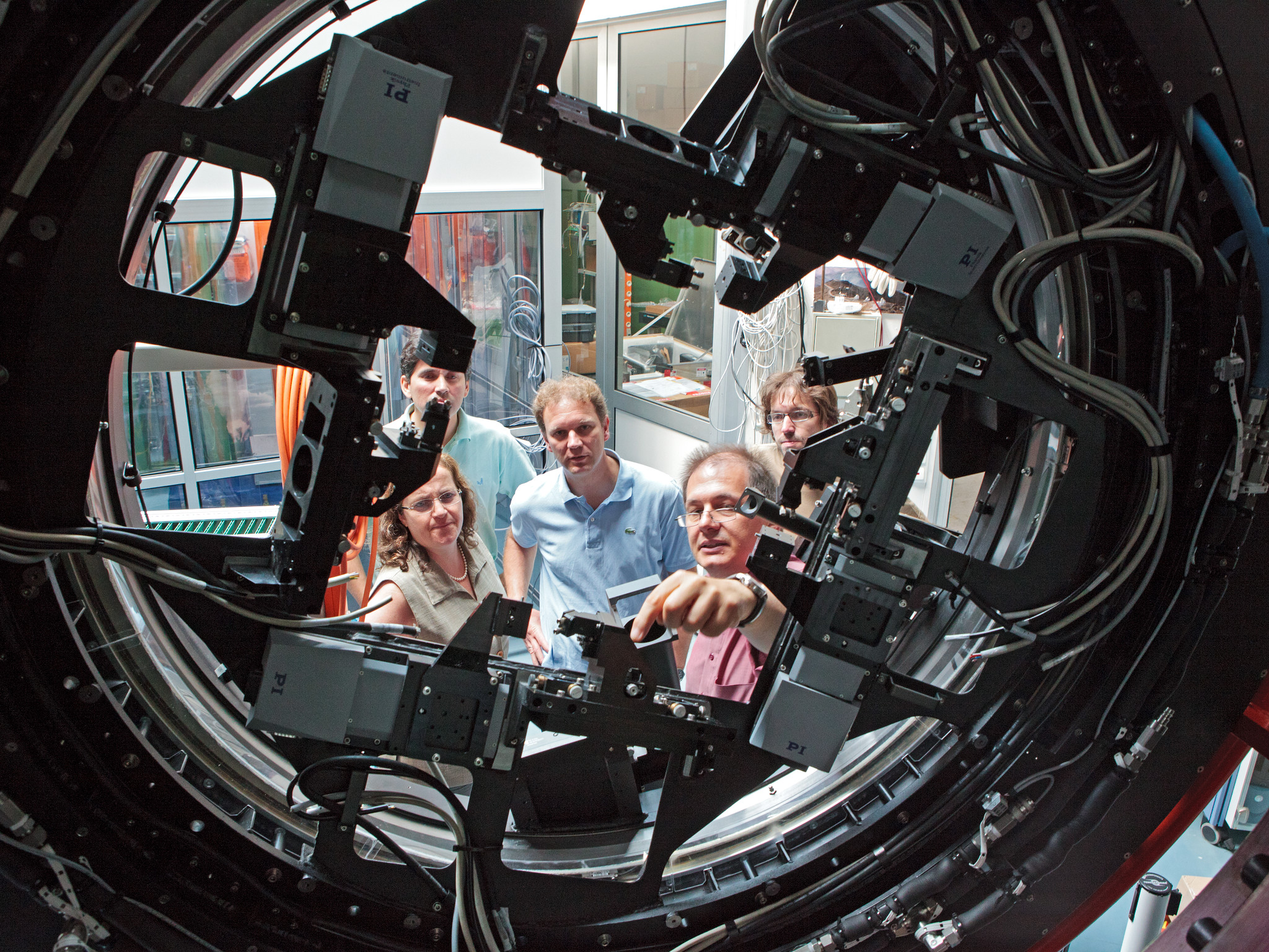 This image shows some of the GRAAL instrument team, inspecting GRAAL’s mechanical assembly in the integration hall of ESO’s Headquarters in Garching bei Munchen, Germany. GRAAL, which will be installed on ESO’s Very Large Telescope (VLT) on Cerro Paranal in Chile, is designed to improve the vision of the VLT’s already excellent HAWK-I camera even further.