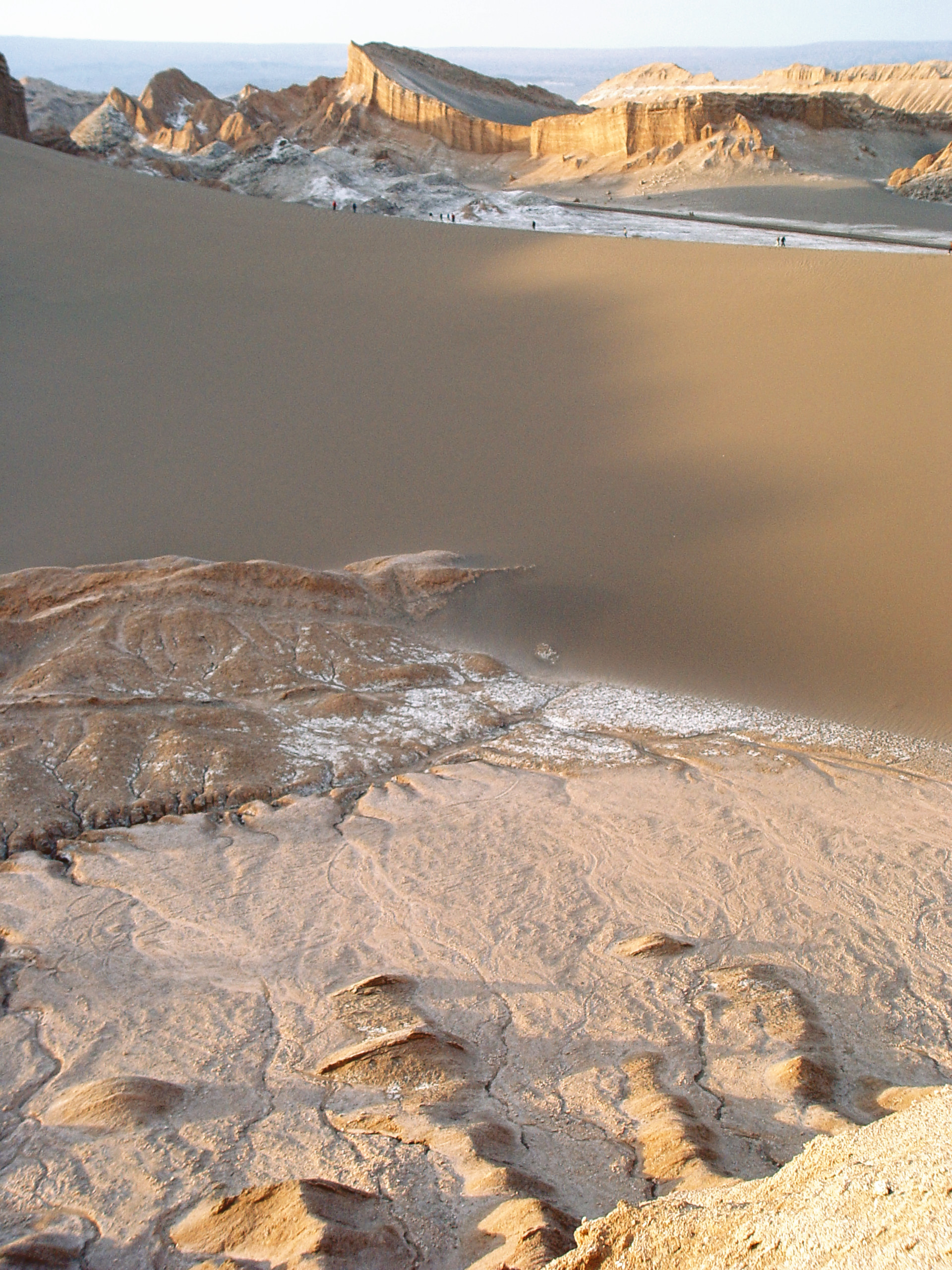 Sunset over the sand dunes and the impressive lanscape of Valle de la Luna, near San Pedro de Atacama.