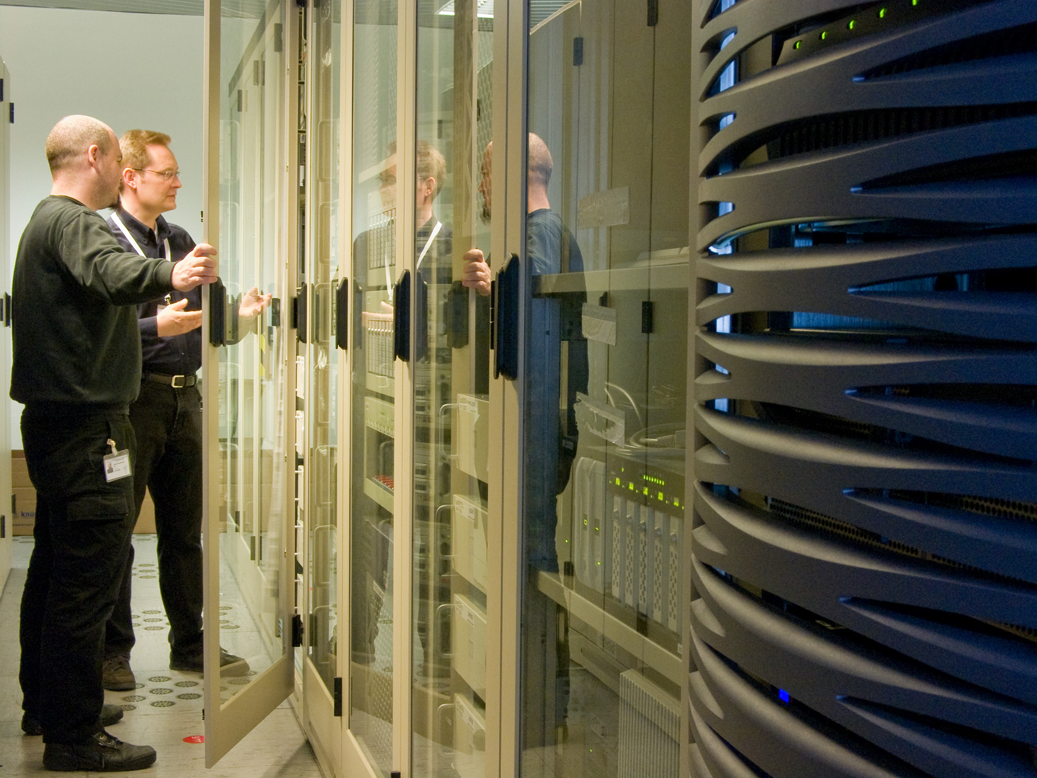 This is a row of servers that provide access to the science data archive. This picture was obtained in early 2005.